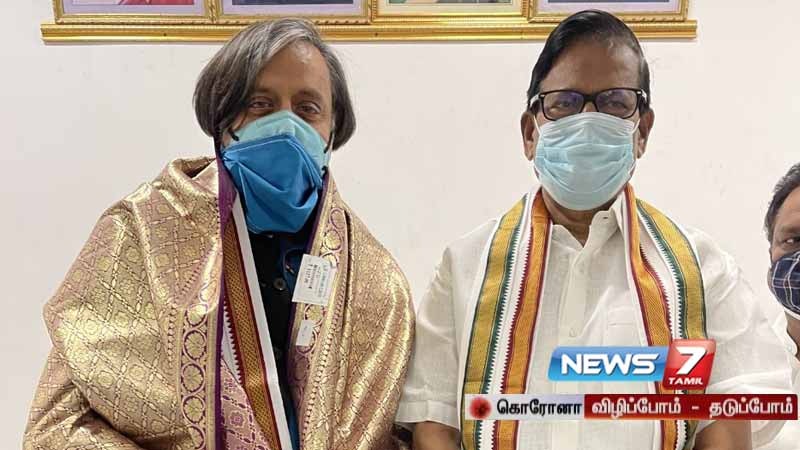 சென்னை சத்தியமூர்த்தி பவனில் தமிழ்நாடு காங்கிரஸ் கமிட்டி தலைவர் கே.எஸ்.அழகிரி, அகில இந்திய காங்கிரஸ் செயலாளர் சிறிவெல்லா பிரசாத், மக்களவை உறுப்பினர் சசி தரூர் ஆகியோர் இன்று செய்தியாளர்களை சந்தித்தனர்.