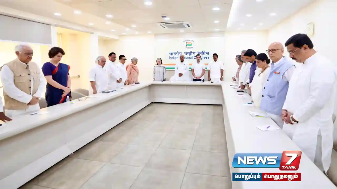 இந்த நிலையில் டெல்லியில் உள்ள காங்கிரஸ் தலைமை அலுவலகத்தில் காங்கிரஸ் கட்சியின் தேசிய செயற்குழு கூட்டம் தொடங்கியது. இக்கூட்டத்தில் காங்கிரஸ் கட்சியின் மூத்த தலைவர் சோனியா காந்தி, தேசியத் தலைவர் மல்லிகார்ஜுன கார்கே, மக்களவை எதிர்க்கட்சித் தலைவர் ராகுல் காந்தி, பிரியங்கா காந்தி, ஜெய்ராம் ரமேஷ், சல்மான் குர்ஷித் உள்ளிட்ட முக்கியத் தலைவர்கள் கலந்து கொண்டனர்.