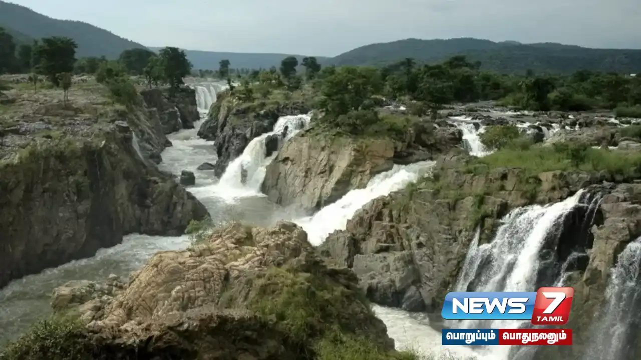 ஒகேனக்கல் காவிரி ஆற்றில் நீர்வரத்து விநாடிக்கு 30,000 கன அடியாக அதிகரித்துள்ள நிலையில், அருவிகளில் குளிக்கவும், பரிசல் இயக்கவும் 10வது நாளாக தடை விதிக்கப்பட்டுள்ளது.