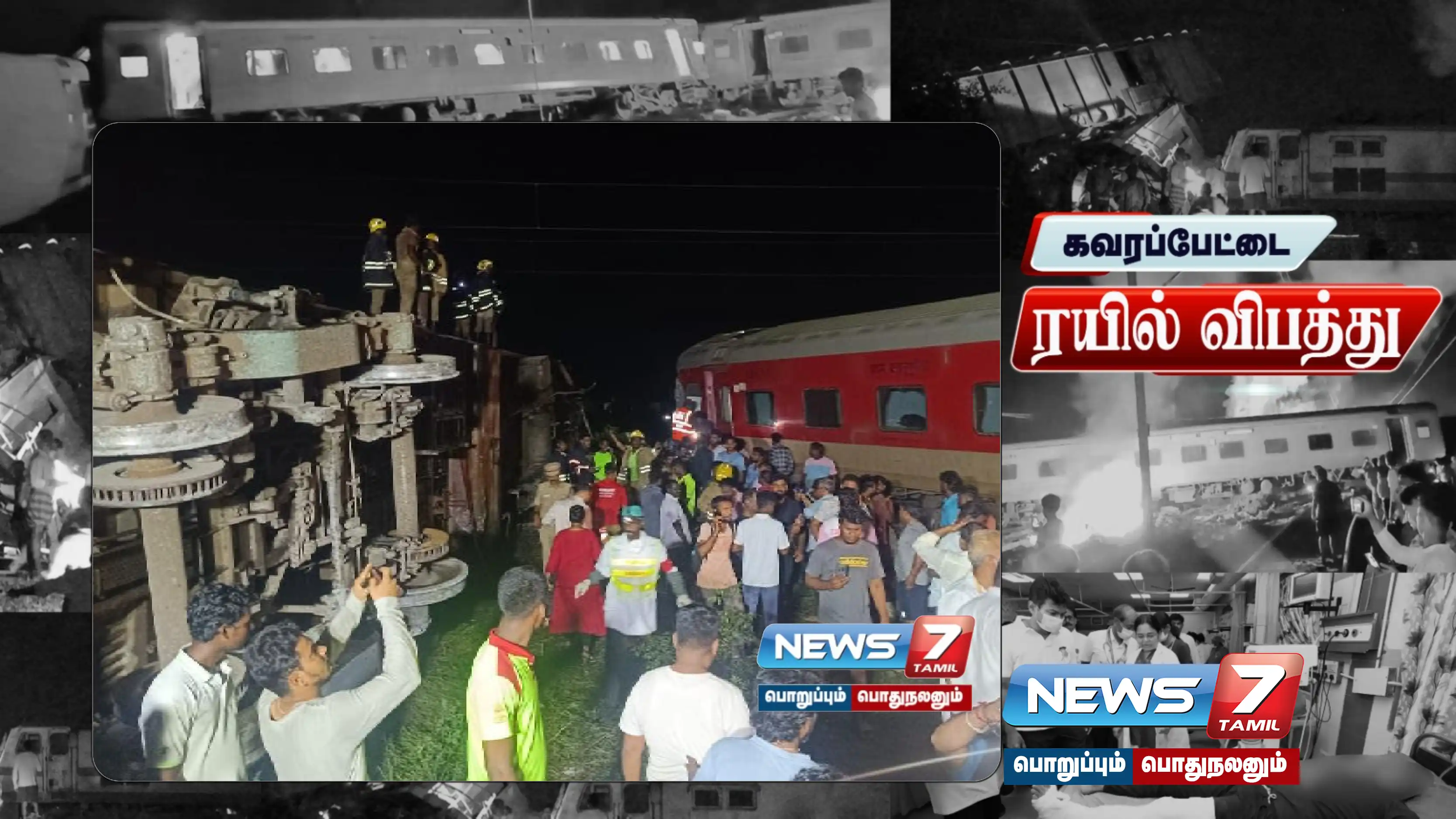 திருவள்ளூர் அருகே கவரப்பேட்டையில் நின்று கொண்டிருந்த சரக்கு ரயில் மீது நேற்று இரவு 8:27 மணிக்கு பாக்மதி எக்ஸ்பிரஸ் பயணிகள் ரயில் மோதியதில், 12 பெட்டிகள் தடம் புரண்டன. சில பயணிகள் காயம் அடைந்தாலும், உயிரிழப்பு ஏதும் இல்லை என தெற்கு ரயில்வே உறுதி செய்தது.