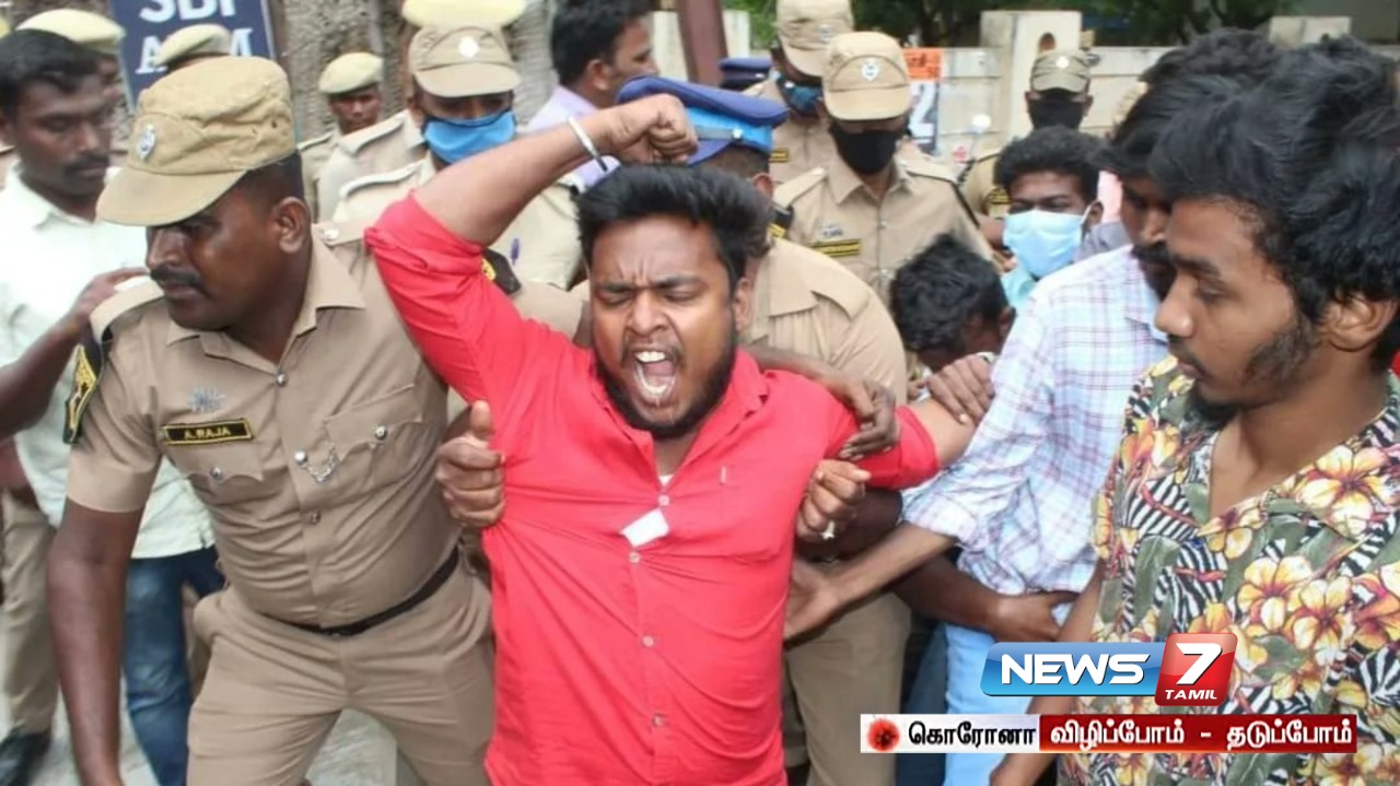 இந்திய மாணவர் சங்கம் உள்ளிட்ட பல்வேறு தரப்பினரும் கருப்புக் கொடி ஏந்தி