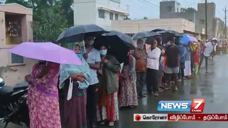 கோவையில் கொட்டும் மழையை பொருட்படுத்தாமல் நீண்ட வரிசையில் காத்திருந்து பொதுமக்கள் தடுப்பூசி செலுத்தி கொண்டனர்.