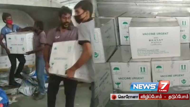 இந்நிலையில், இன்று காலை ஹைதராபாத்திலிருந்து புளூ டார்ட் விமானம் மூலம் 24 பார்சல்களில் 1 லட்சத்து19 ஆயிரத்து 20 கோவேக்சின் தடுப்பூசி மருந்துகள் சென்னை வந்தன.