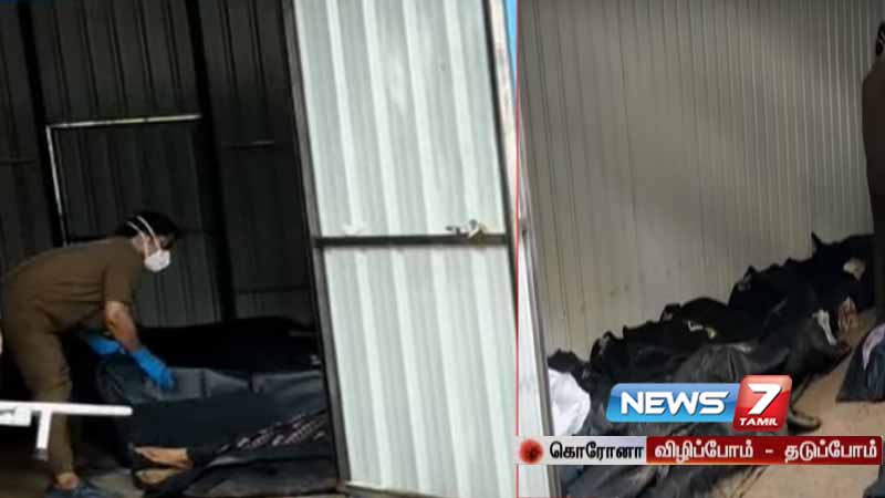 தினமும் கொரோனவால் உயிரிழப்போரின் எண்ணிக்கையால் இந்த தற்காலிக பிணவறையில் உடல்கள் குவிந்து உள்ளது. இந்த காட்சி மருத்துமனைக்கு வருவோரின் நெஞ்சை உலுக்கும் காட்சியாக உள்ளது.