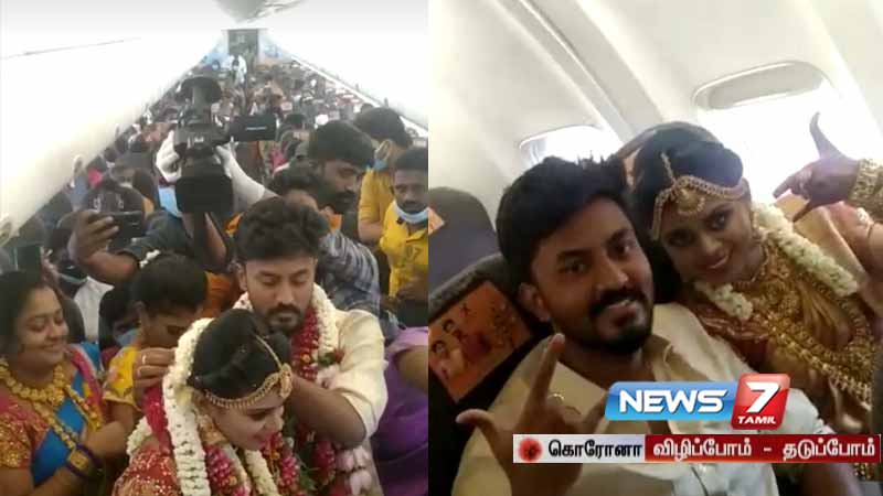 கொரோனா விதிமுறைகளைக் கடைபிடிக்காமல், மதுரை – தூத்துக்குடி விமானத்தில் நடந்த திருமணம் தற்போது பல்வேறு சர்ச்சையை உருவாக்கியுள்ளது.