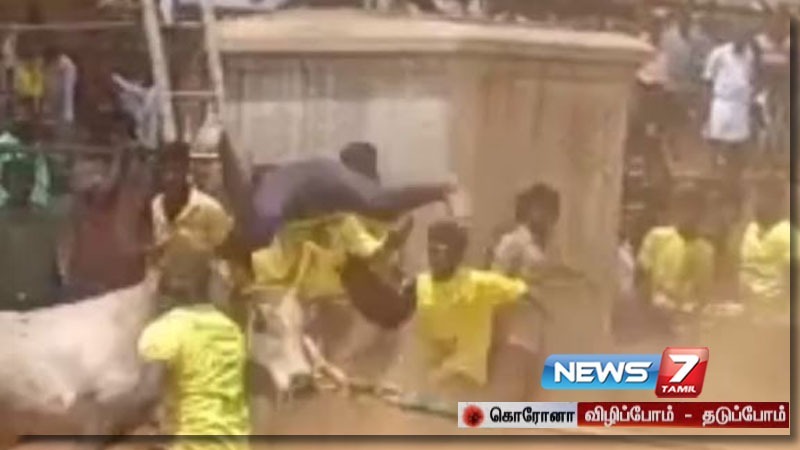 அப்போது காளை முட்டி தூக்கி வீசியதில் படுகாயமடைந்த சக்திவேல் சிவகங்கை அரசு மருத்துவக்கல்லூரி மருத்துவமனைக்கு சிகிச்சைக்காக அனுப்பி வைக்கப்பட்டார்.