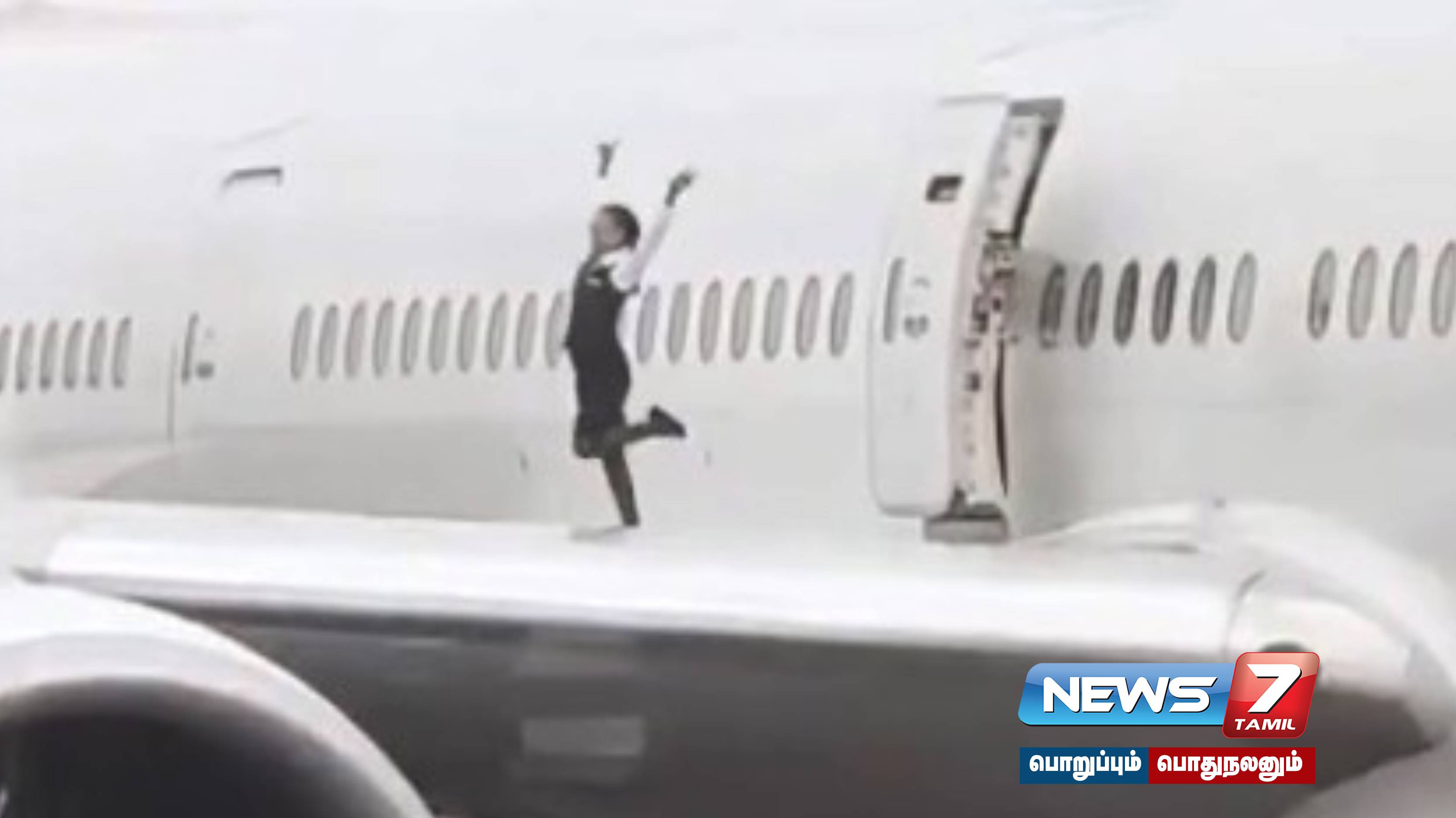 விமானத்தில் இறக்கை மேல் நின்றபடி ஊழியர்கள் போட்டோவுக்கு போஸ் கொடுக்கும் வீடியோ இணையத்தில் வைரலாகி வருகிறது.