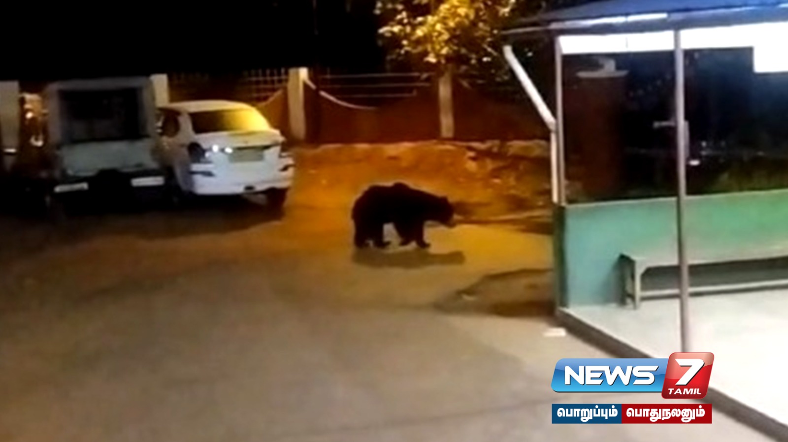 2.30 மணி அளவில், கரடி ஒன்று காவல் நிலையத்தின் தடுப்பு சுவரை தாண்டி