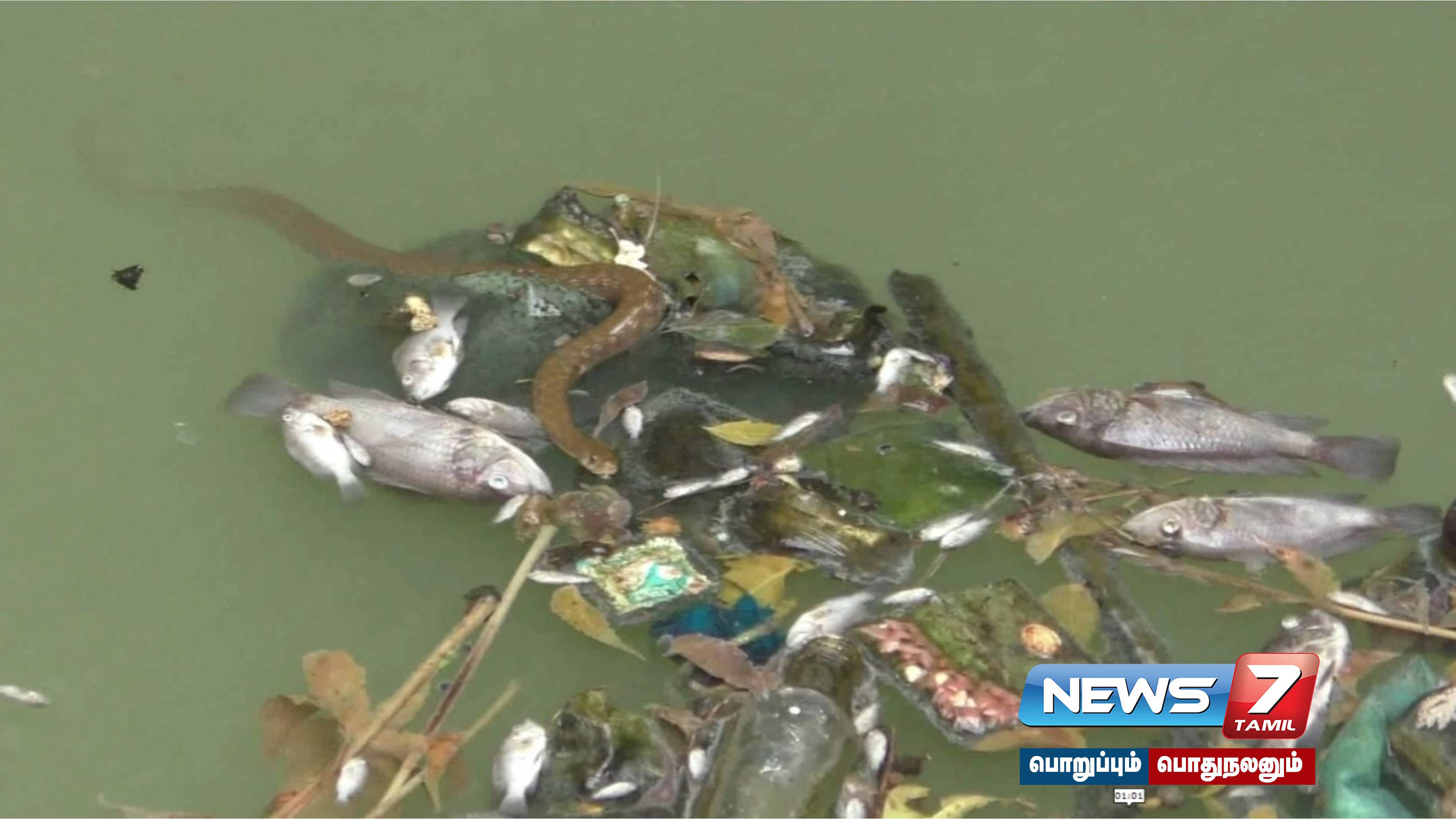 இதைப்பார்த்த அப்பகுதி மக்கள் அதிர்ச்சியடைந்தனர். மேலும் உயிரோடு இருந்த மீன்களும் மயங்கி மயங்கி சிறிது நேரத்தில் இறந்து கொண்டே இருந்தது. அந்த மீன்கள் இறந்து கிடப்பதற்கு மேல் பாம்பு ஒன்று ஹாயாக உலா வந்து கொண்டிருக்கின்றது.