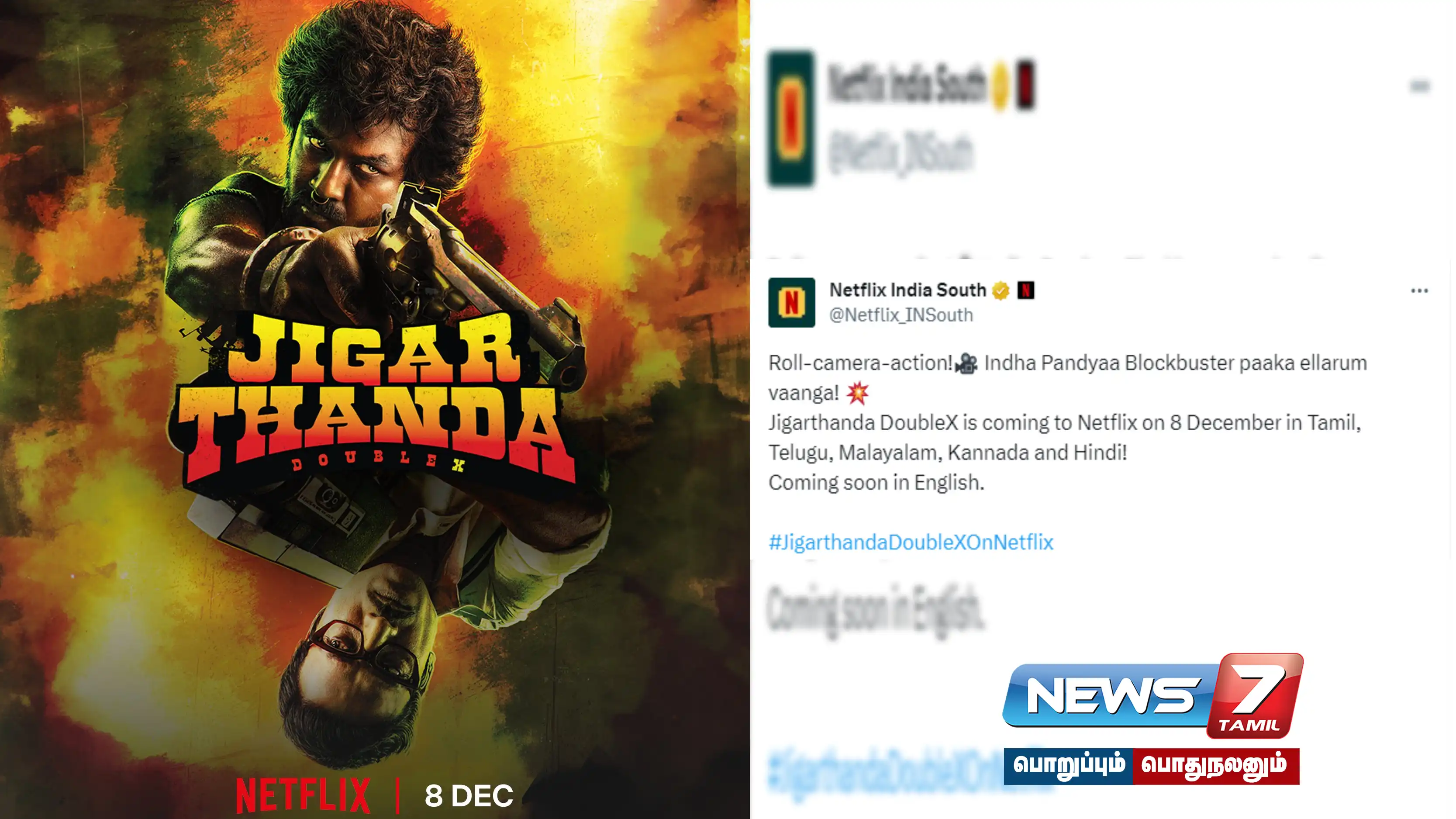 திரையரங்குகளில் நல்ல வரவேற்பையும், பொழிவான விமர்சனத்தையும் குவித்த ‘ஜிகர்தண்டா டபுள் எக்ஸ்’ திரைப்படத்தின் ஓடிடி வெளியீடு குறித்து நெட்பிளிக்ஸ் நிறுவனம் அறிவித்துள்ளது.
