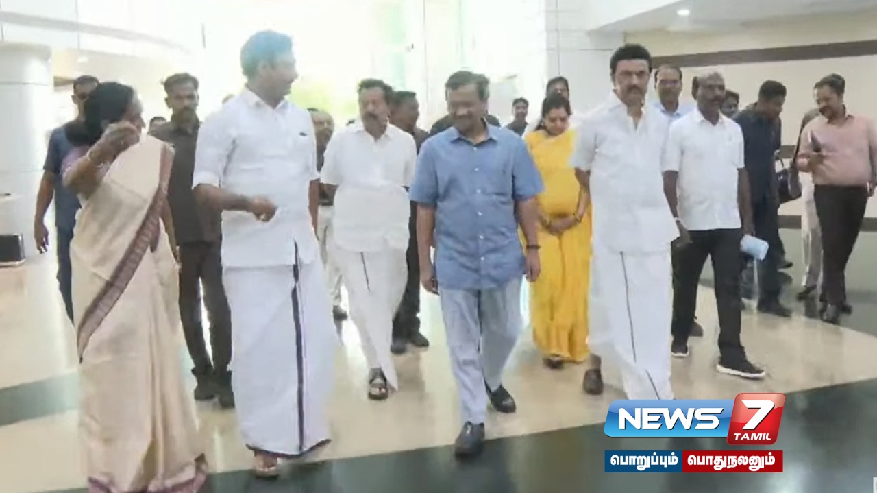 நிகழ்விற்கு பிறகு சென்னை கோட்டூர்புரத்தில் அமைந்துள்ள அண்ணா நூற்றாண்டு நூலகத்தை பார்வையிட மு.க.ஸ்டாலின் மற்றும் அரவிந்த் கெஜ்ரிவால் ஒரே வாகனத்தில் வந்தனர். அப்போது தேசிய மாணவர் படையினர் அவர்களுக்கு அணிவகுப்பு மரியாதையை அளித்தனர்.