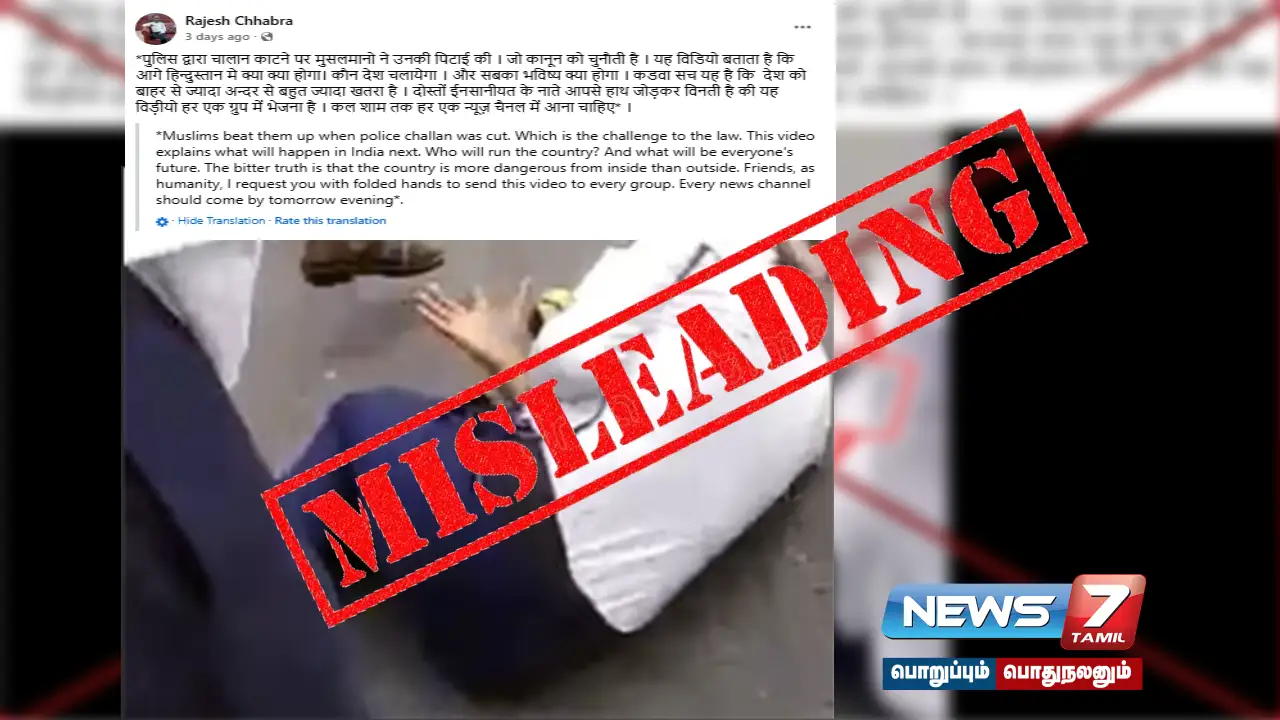நவம்பர் 14 அன்று வைரலான வீடியோவைப் பகிர்ந்த ஃபேஸ்புக் பயனர் ராஜேஷ் சாப்ரா, “சலான் வழங்கியபோது காவல்துறையை முஸ்லீம்கள் அடித்தனர். இது சட்டத்திற்கு எதிரான சவால். எதிர்காலத்தில் இந்தியாவில் என்ன நடக்கும் என்பதை இந்த வீடியோ சொல்கிறது. நாட்டை யார் வழிநடத்துவார்கள்? அனைவரின் எதிர்காலம் என்னவாக இருக்கும்? கசப்பான உண்மை என்னவென்றால், வெளியிலிருந்து வரும் ஆபத்தை விட உள்ளே இருந்து நாடு அதிக ஆபத்தை எதிர்கொள்கிறது. நண்பர்களே, மனிதாபிமானத்தின் அடிப்படையில், இந்த வீடியோவை ஒவ்வொரு குழுவிற்கும் அனுப்புமாறு கைகூப்பியபடி கேட்டுக்கொள்கிறேன். நாளை மாலைக்குள் எல்லா செய்தி சேனலிலும் இது வெளிவர வேண்டும்” இவ்வாறு குறிப்பிட்டுள்ளார்.