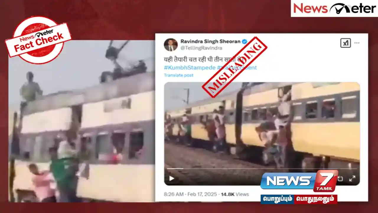 டெல்லி ரயில் நிலையத்தில் ஏற்பட்ட கூட்ட நெரிசலைத் தொடர்ந்து பயணிகள் ஏற்றிச் சென்ற ரயில் என ஒரு வீடியோ வைரலாகி வருகிறது. இதுகுறித்து ஆய்வுக்கு உட்படுத்தியதில் அந்த வீடியோ 018 முதல் பரவி வருவதாகவும், உ.பி.யின் பிரயாக்ராஜில் நடைபெற்று வரும் கும்பமேளாவுடன் இதற்கு எந்த தொடர்பும் இல்லை என்றும் கண்டறியப்பட்டுள்ளது.