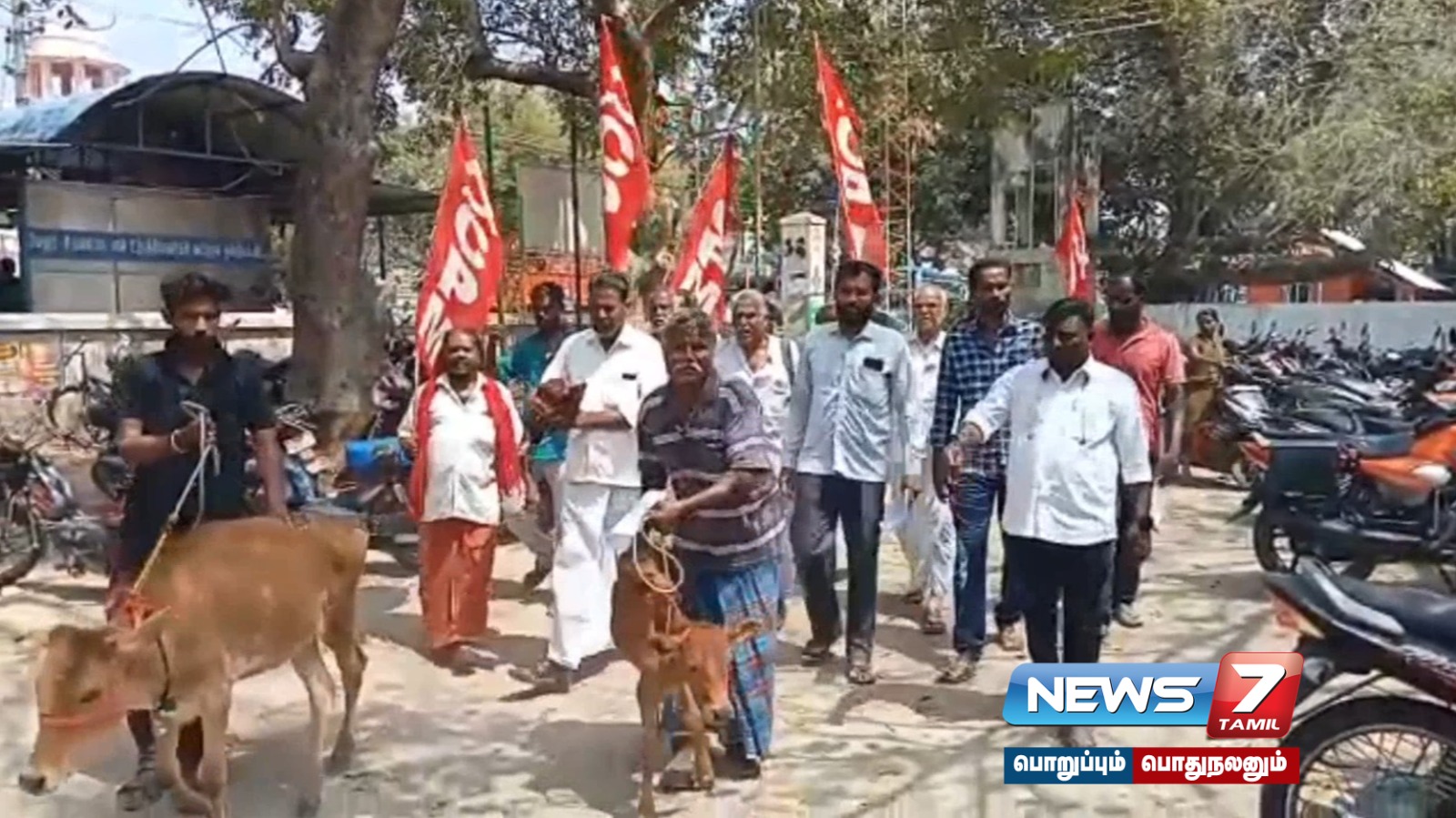 வந்தவாசி கால்நடை மருத்துவமனையில் உரிய மருத்துவர்கள் இல்லை எனக் கூறி மார்க்சிஸ்ட் கம்யூனிஸ்ட் கட்சி சார்பில் 20-க்கும் மேற்பட்டோர்,மாடு கோழிகளை வைத்து மனு கொடுத்து நூதன முறையில் ஆர்ப்பாட்டம் நடத்தினர்.