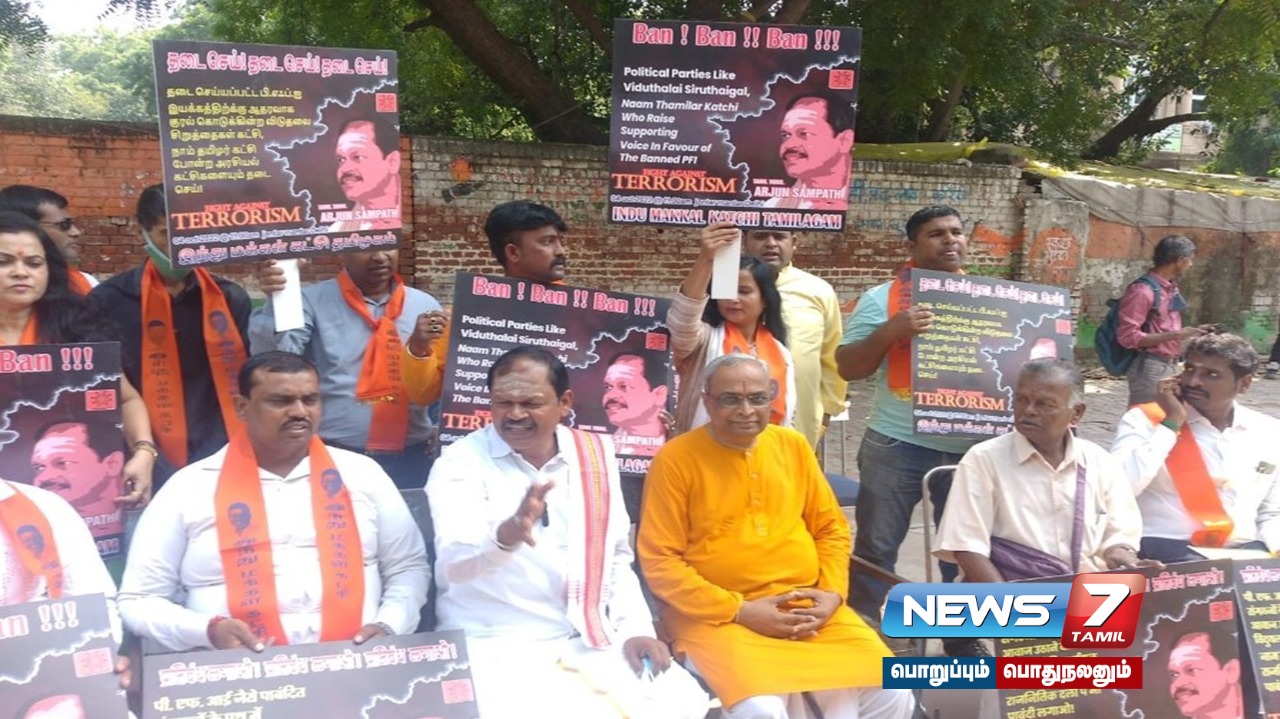 டெல்லி ஜந்தர்மந்தரில் இந்து மக்கள் கட்சி சார்பில் அர்ஜுன் சம்பத் தலைமையில் ஆர்ப்பாட்டம் நடைபெற்றது.