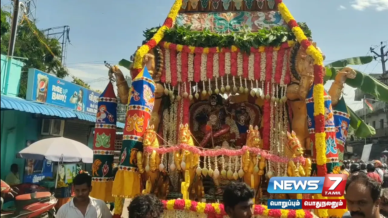மற்றும் கோயிலின் முக்கிய நான்கு மாட வீதிகளின் வழியாக ஊர்வலமாக இழுத்து