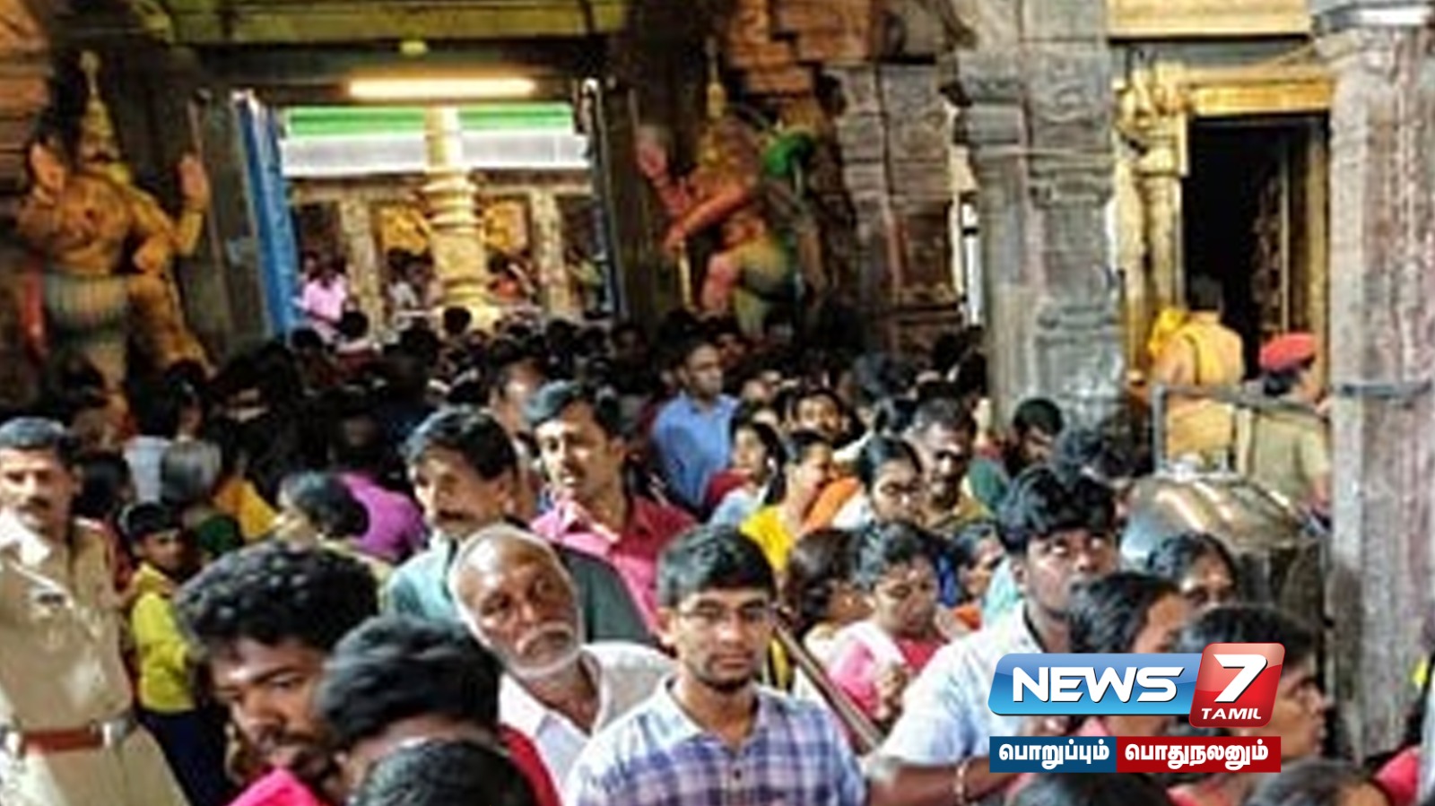 இதன் காரணமாக கோவில் அதிகாலை 4.30 மணிக்கு கோயில் நடை திறக்கப்பட்டு அர்ச்சனை மற்றும் அபிஷேகம் தொடரந்து நடைபெற்று வருகிறது. புனித நலன் தீர்த்த குளத்தில் பக்தர்கள் நீராடி நீணட வரிசையில் காத்திருந்து சுவாமியை தரிசித்துனர்.