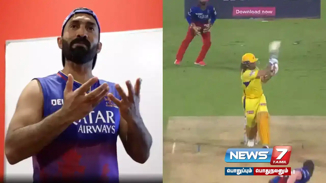 “தோனியின் 110M சிக்ஸர்தான் பெங்களூரு அணியின் வெற்றியை எளிதாக்கியது” என அந்த அணியின் வீரர் தினேஷ் கார்த்திக் தெரிவித்துள்ளார்.