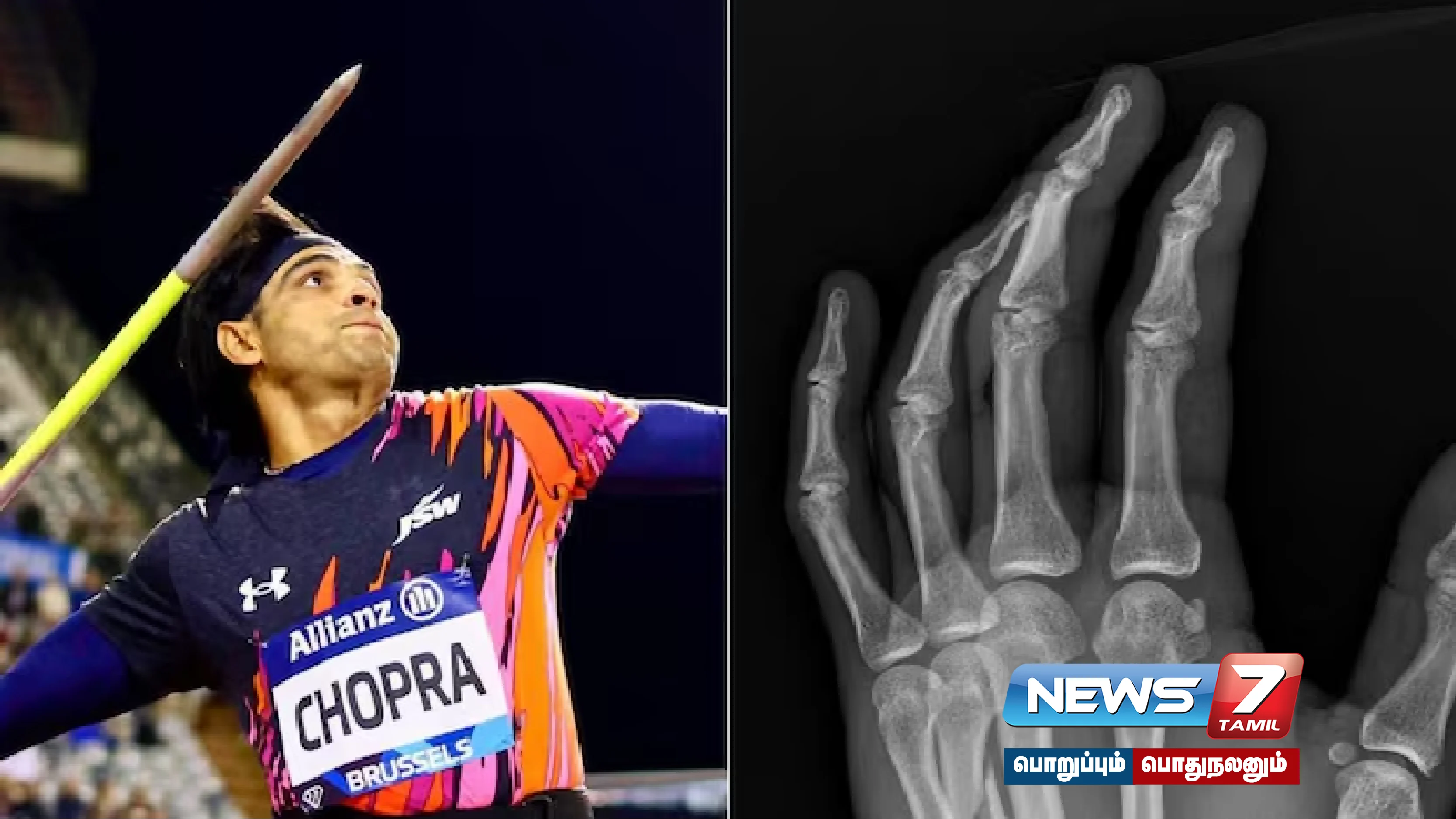 வலது கையால் வீசி வரும் நீரஜ் சோப்ரா, இடது கையில் ஏற்பட்ட வலி காரணமாக மருத்துவரிடம் சென்று எக்ஸ்ரே பரிசோதனை செய்தாா். அதில் இடது கையில் விரல்களில் முறிவு ஏற்பட்டது கண்டுபிடிக்கப்பட்டது. பயிற்சியின் போது நீரஜ் விரலில் முறிவு ஏற்பட்டது. 90. மீ தொலைவுக்கு எறிய வேண்டும் என்ற இலக்குடன் செயல்பட்டு வரும் நீரஜ் சோப்ரா நிகழாண்டு முழு உடல்தகுதியுடன் காணப்படவில்லை.