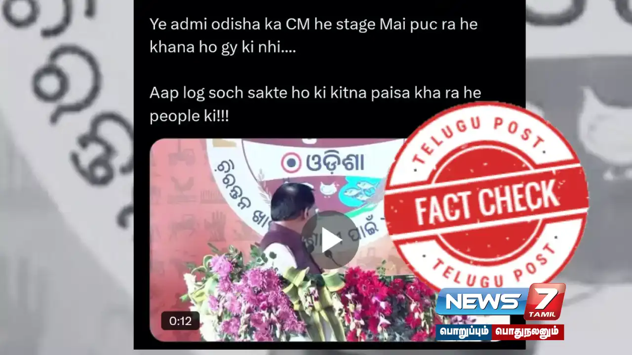ஒடிசாவின் முதலமைச்சர் மோகன் சரண் மாஜி பொதுக்கூட்டத்தில் தனது உணவு குறித்து கேட்டார் என வீடியோ ஒன்று வைரலாகி வருகிறது. இதுகுறித்த உண்மை சரிபார்ப்பை காணலாம்.