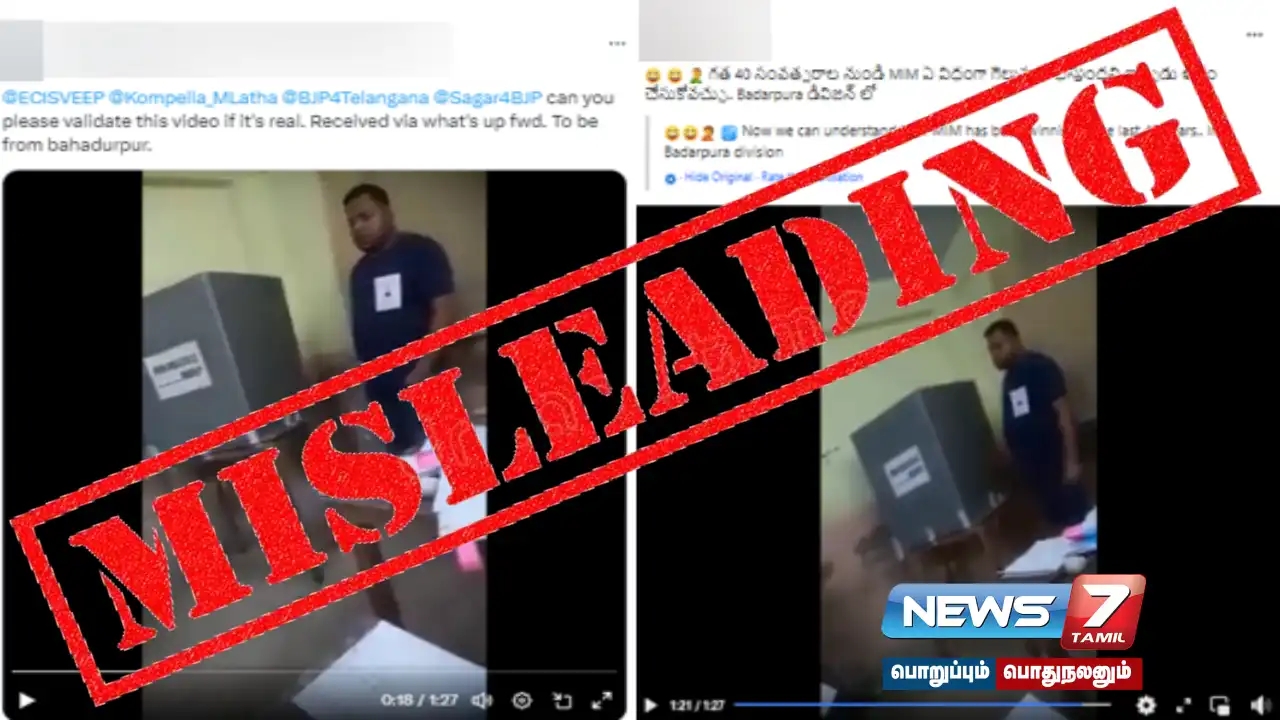 வாக்குச்சாவடியில் ஒரு நபர் மற்றவர்களின் வாக்குகளைப் பதிவு செய்த வீடியோ ஒன்று சமூக வலைதளத்தில் பகிரப்படுகிறது. இந்த வீடியோ 2024 நாடாளுமன்ற தேர்தலில் ஹைதராபாத்தில் உள்ள பஹதூரபுரம் வாக்குச்சாவடியில் வாக்குப்பதிவின் போது, எடுக்கப்பட்ட வீடியோ என்று பகிரப்பட்டு வந்தது. இந்த வீடியோ குறித்த உண்மையை அறிந்துகொள்ள FACTLY சார்பில் முயற்சி செய்யப்பட்டது.