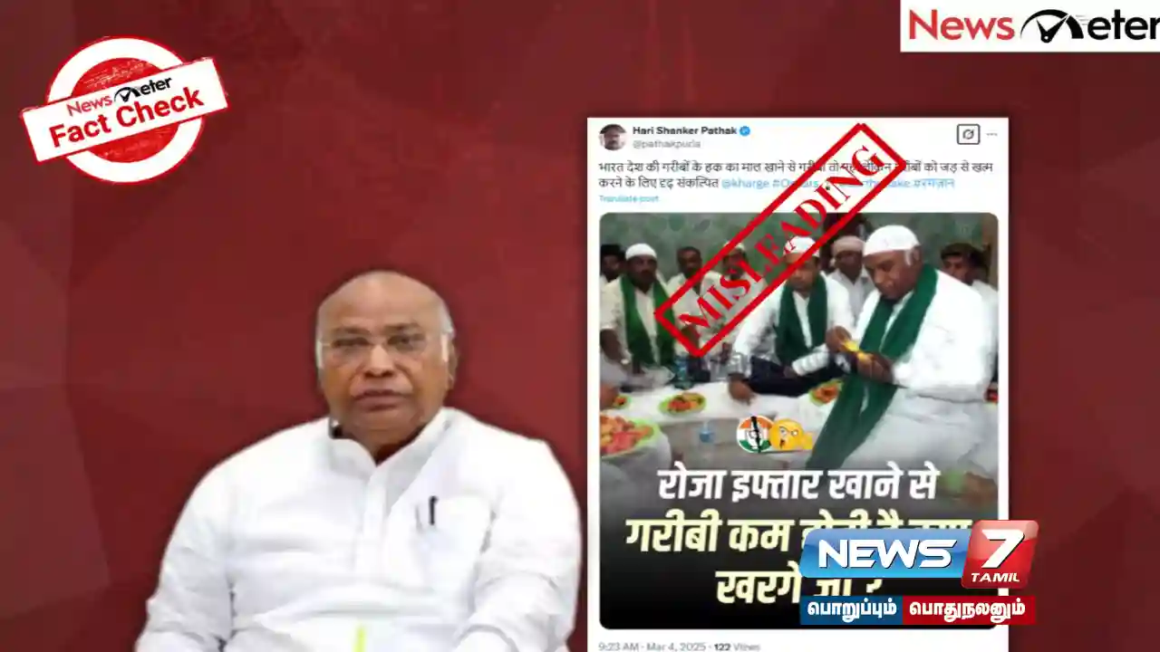 இந்த நிலையில் மார்ச் 2 ஆம் தேதி ரமலான் மாதம் தொடங்கிய நிலையில், மல்லிகார்ஜுன் கார்கே ஒரு இப்தார் விருந்தில் கலந்துகொள்வது போன்ற ஒரு படம் சமூக ஊடகங்களில் பரவி வருகிறது, இது சமீபத்தியது என்பதைக் குறிக்கிறது. கார்கேவை விமர்சிக்கும் படத்தில் பொறிக்கப்பட்ட வாசகம், “கார்கே ஜி, இப்தார் விருந்து சாப்பிடுவது வறுமையைக் குறைக்குமா?” என்று எழுதப்பட்டுள்ளது.