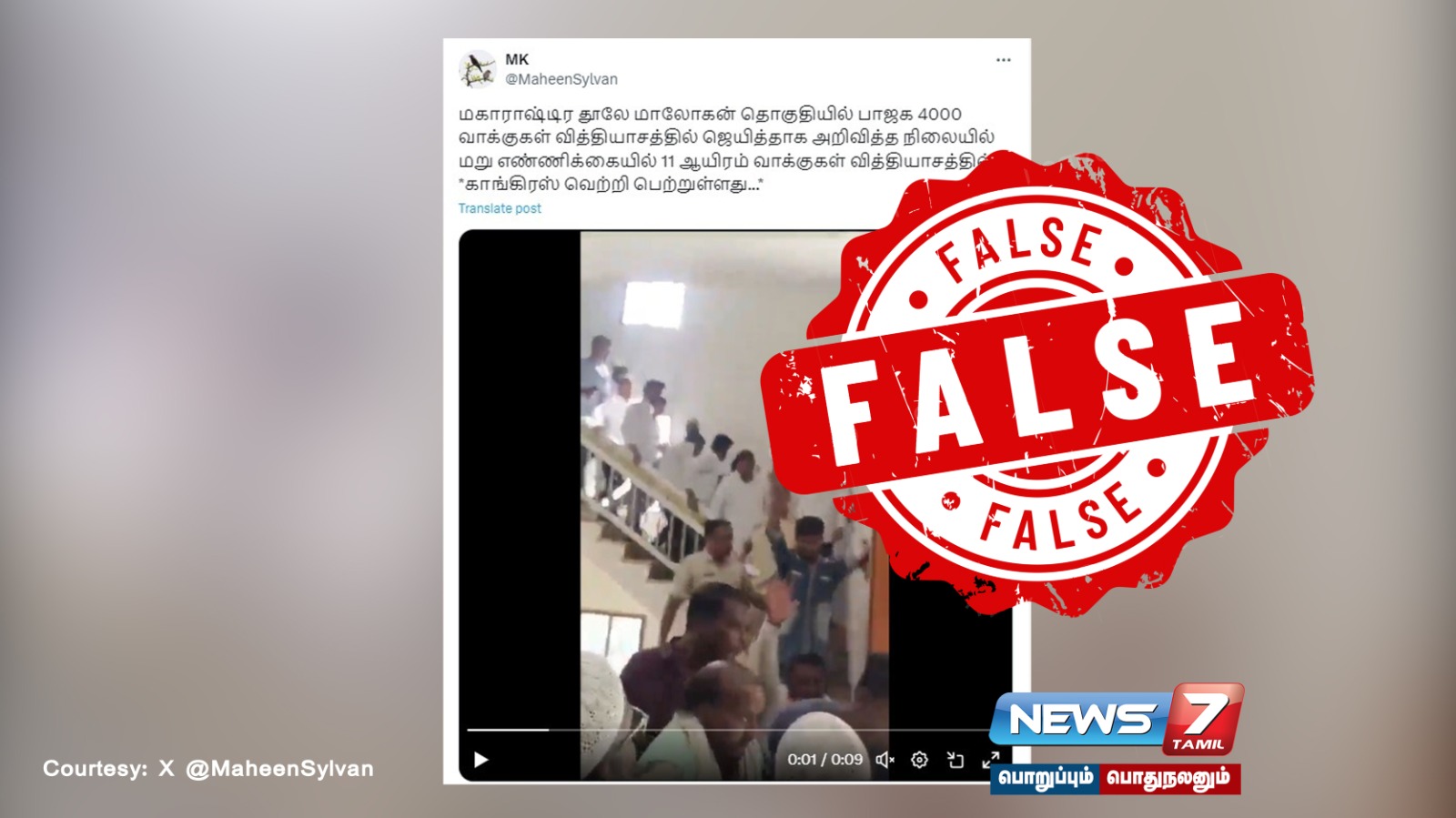 பரப்பப்பட்ட தகவல்: மகாராஷ்டிர தூலே மாலோகன் தொகுதியில் பாஜக 4000 வாக்குகள் வித்தியாசத்தில் ஜெயித்தாக அறிவித்த நிலையில் மறு எண்ணிக்கையில் 11 ஆயிரம் வாக்குகள் வித்தியாசத்தில் காங்கிரஸ் வெற்றி பெற்றுள்ளது