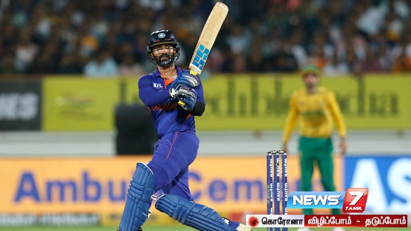 அப்போது ஆல்-ரவுண்டர் ஹார்திக் பாண்டியாவும், தினேஷ் கார்த்திக்கும் சிறப்பாக விளையாடி அணியின் ஸ்கோரை உயர்த்தினர். ஹார்திக் பாண்டியா 31 பந்துகளில் 46 ரன்கள் எடுத்து ஆட்டமிழந்தார். தினேஷ் கார்த்திக், 2 சிக்ஸர்கள் மற்றும் 9 பவுண்டரிகளுடன் 55 ரன்கள் எடுத்து ஆட்டமிழந்தார்.