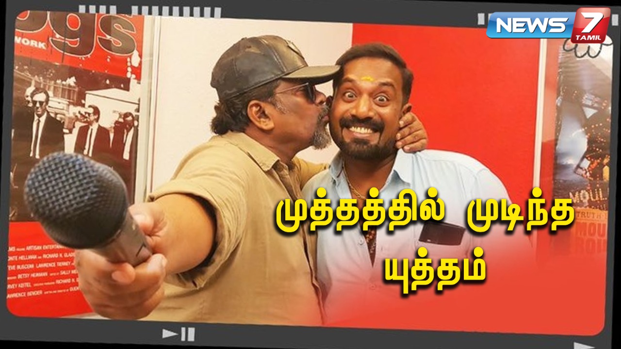இருப்பின் மன உறுத்தலோடு இருந்த பார்த்திபன் ரோபோ சங்கரை நேரில் பார்த்து, அவரை கட்டியணைத்து ஒரு கையில் மைக்கை நீட்டியவாரு அவருக்கு முத்தம் கொடுத்து அந்த புகைப்படத்தை சமூக வலைதளங்களில் பகிர்ந்திருக்கிறார். அதில் மைக்கை, ‘கண்டுபிடித்தவர் Emile Berliner, மைக்கை கேட்ச் பிடிக்காமல் விட்டவர் ரோபோ சங்கர், மைக்கால் பிடிபட்டவர் பார்த்திபன் ராதா கிருஷ்ணன் என’ அவருக்கே உரிய நகைச்சுவை பாணியில் கிண்டலான வாசகங்களுடன் அந்த புகைப்படத்தை பகிர்ந்தார். முத்தத்தில் முடிந்த இந்த யுத்ததால், ‘ரோபோ சங்கர் ஹாப்பி அண்ணாச்சி’ என்பது போல் வாய் நிறைய புண்ணையுடன் போஸ் கொடுத்துள்ளார் ரோபோ சங்கர். அன்புதானே எல்லாம்!