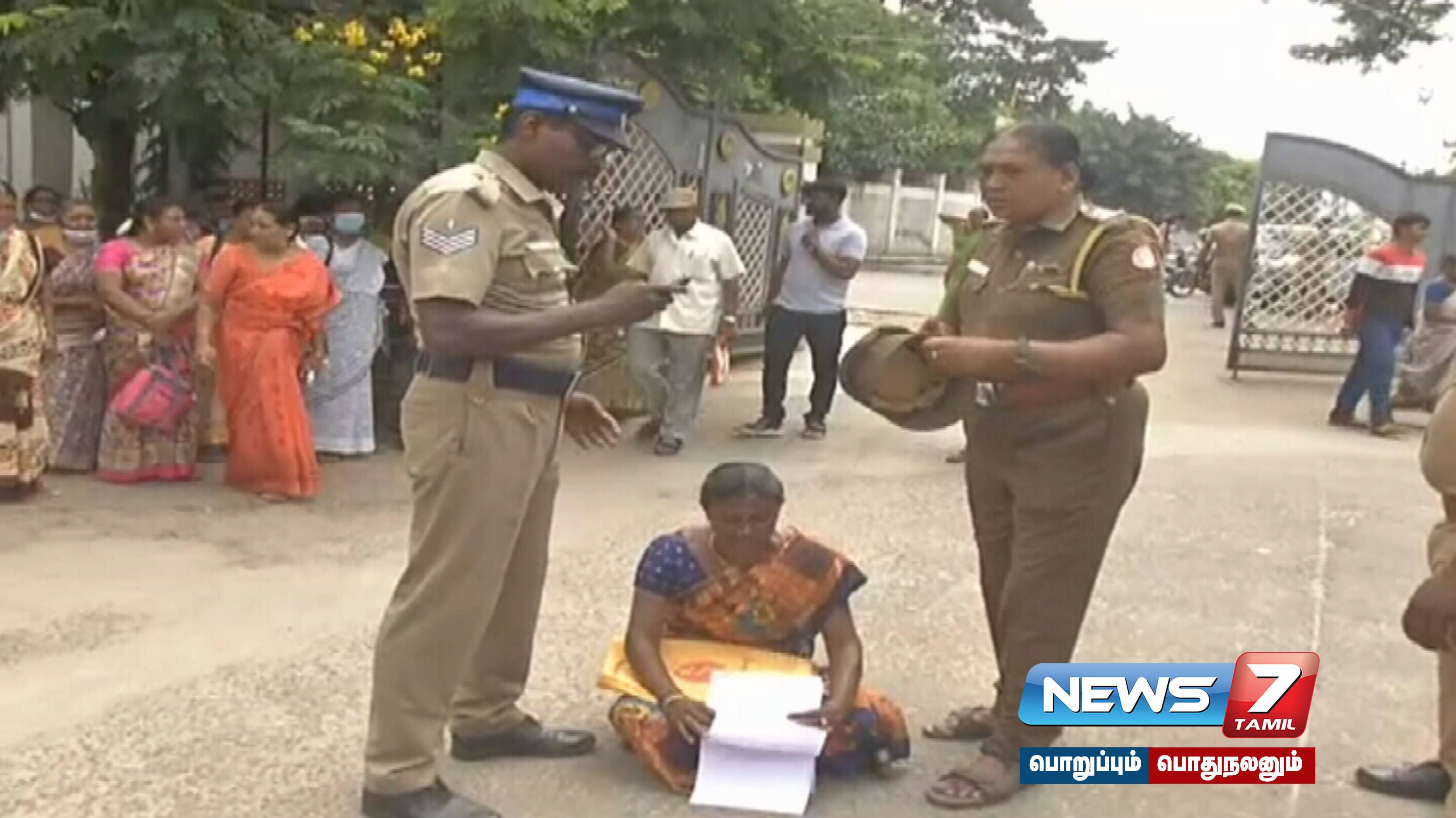 இந்த நிலையில் தர்ணாவில் அமர்ந்த தனலட்சுமியிடம் காவல் துறையினர் பேச்சுவார்த்தை நடத்தினர். இதை தொடர்ந்து அப்பெண் தர்ணாவை முடித்து மாவட்ட ஆட்சியர் டாக்டர் ஜி.எஸ்.சமீரன் அவர்களிடம் மனு அளிக்க சென்றார்.