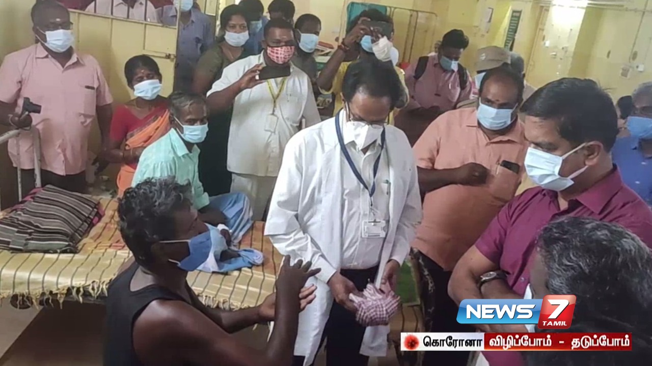 அப்போது, உள்நோயாளியாக அனுமதிக்கப்பட்டிருந்த ஒருவர், மாவட்ட ஆட்சியரிடம் இங்கு உள்நோயாளியாக அனுமதிப்பதற்கு ஊழியர் ஒருவர் 200 ரூபாய் பணம் கேட்டதாக ஆட்சியரிடம் நேரடியாக மருத்துவர்கள் மற்றும் அதிகாரிகள் முன்னிலையில் குற்றம் சாட்டு தெரிவித்துள்ளார். அப்போது அருகிலிருந்த மருத்துவமனை ஊழியர் பதறி அடித்து ஐயா நான் சத்தியமாகப் பணம் கேட்கவில்லை எனக் கூறியுள்ளார். உடனடியாக அவரை அங்கேயே எச்சரித்துள்ளார்.