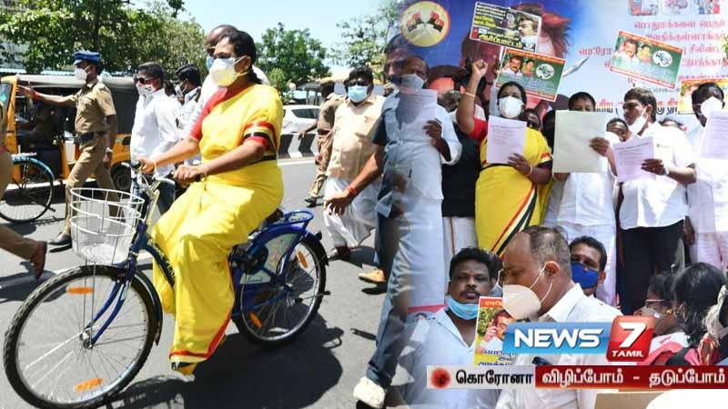 பெட்ரோல், டீசல் மற்றும் சமையல் எரிவாயு விலை ஏற்றம் தொடர்பாக சென்னை ஆட்சியர் அலுவலகம் அருகே மத்திய, மாநில அரசுகளை கண்டித்து தேமுதிக சார்பில் இன்று ஆர்ப்பாட்டம் நடைபெற்றது. அதில், தேமுதிக பொருளாளர் பிரேமலதா உள்ளிட்டோர் கலந்துகொண்டு கண்டன முழக்கங்கள் எழுப்பினர்.