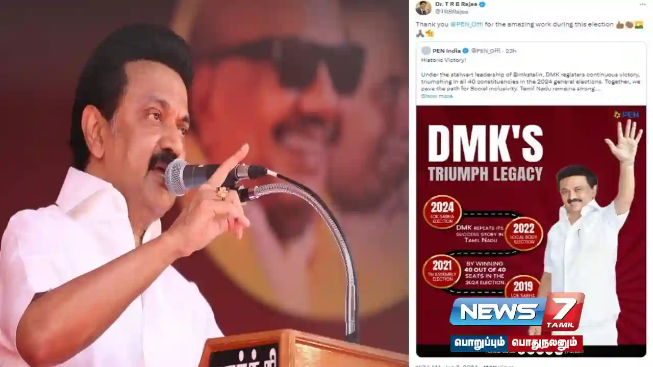நாடாளுமன்ற தேர்தலில் தமிழ்நாட்டில் திமுக கூட்டணி 40க்கு 40 வென்றுள்ள நிலையில், அக்கூட்டணி வெற்றிக்கு உழைத்த PEN India நிறுவனத்திற்கு தொழில்துறை அமைச்சர் டி.ஆர்.பி.ராஜா நன்றி தெரிவித்துள்ளார்.
