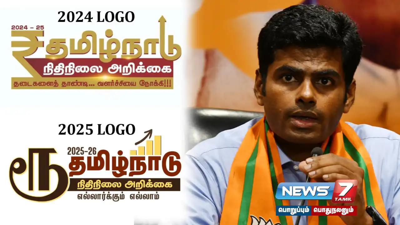 தமிழ்நாடு அரசின் 2025-26 ஆண்டிற்கான நிதிநிலை அறிக்கைக்கான லோகோவில் இந்தியா ரூபாயின் குறியீடுக்கு (₹) பதிலாக ‘ரூ’ இலச்சினை பயன்படுத்தப்பட்டுள்ளது. இதனை பாஜக மாநில தலைவர் அண்ணாமலை விமர்சனம் செய்துள்ளார். இது தொடர்பாக அவர் வெளியிட்டுள்ள எக்ஸ் தள பதிவில் கூறப்பட்டுள்ளதாவது,