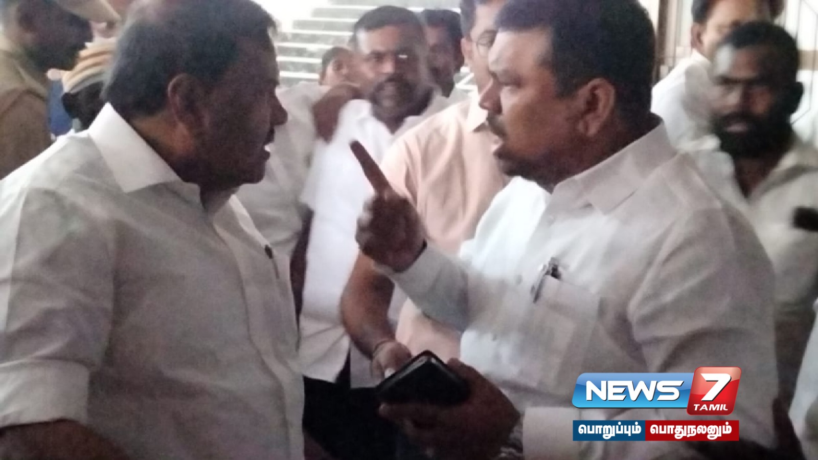 இதற்கிடையே அமைச்சர் ராஜகண்ணப்பன் மற்றும் நவாஸ் கனி எம்பி நேருக்கு நேர் வாக்குவாதத்தில் ஈடுபட்டனர். அதேபோல் அவர்களின் ஆதரவாளர்களும் வாக்குவாதத்தில் ஈடுபட்டு மோதிக்கொண்டனர். இதனால் அங்கு பரபரப்பான சூழல் ஏற்பட்டது. இதையடுத்து நவாஸ் கனி எம்பி மற்றும் அமைச்சர் ராஜகண்ணப்பன் ஆகியோரை சமாதானம் செய்ய முயன்ற ஆட்சியர் விஷ்ணு சந்திரன் தள்ளிவிடப்பட்டார். அவர் சம்பவ இடத்திலேயே நிலைத்தடுமாறி அருகில் உள்ள இருக்கையில் விழுந்தார். இதனால் இன்னும் பரபரப்பு அதிகரித்தது. இருப்பினும் ஒரு கட்டத்தில் மோதல் முடிவுக்கு வந்தது.