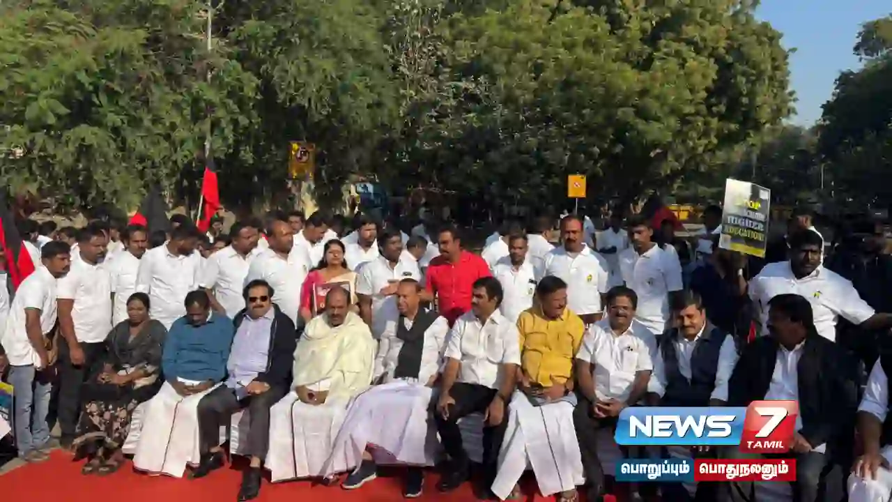 இந்த நிலையில், யுஜிசி-யின் புதிய விதிமுறைகளுக்கு எதிராக திமுக மாணவரணி சார்பில் ஆர்ப்பாட்டம் தொடங்கி நடைபெற்று வருகிறது. இந்தப் போராட்டத்தில் மக்களவை எதிர்க்கட்சி தலைவர் ராகுல்காந்தி சமாஜ்வாதி கட்சி தலைவர் அகிலேஷ் யாதவ், விசிக தலைவர் திருமாவளவன், கனிமொழி எம்பி, வைகோ, துரை வைகோ உள்ளிட்ட இந்தியா கூட்டணி எம்பிக்கள் பங்கேற்று கண்டன உரையாற்றி வருகின்றனர்.