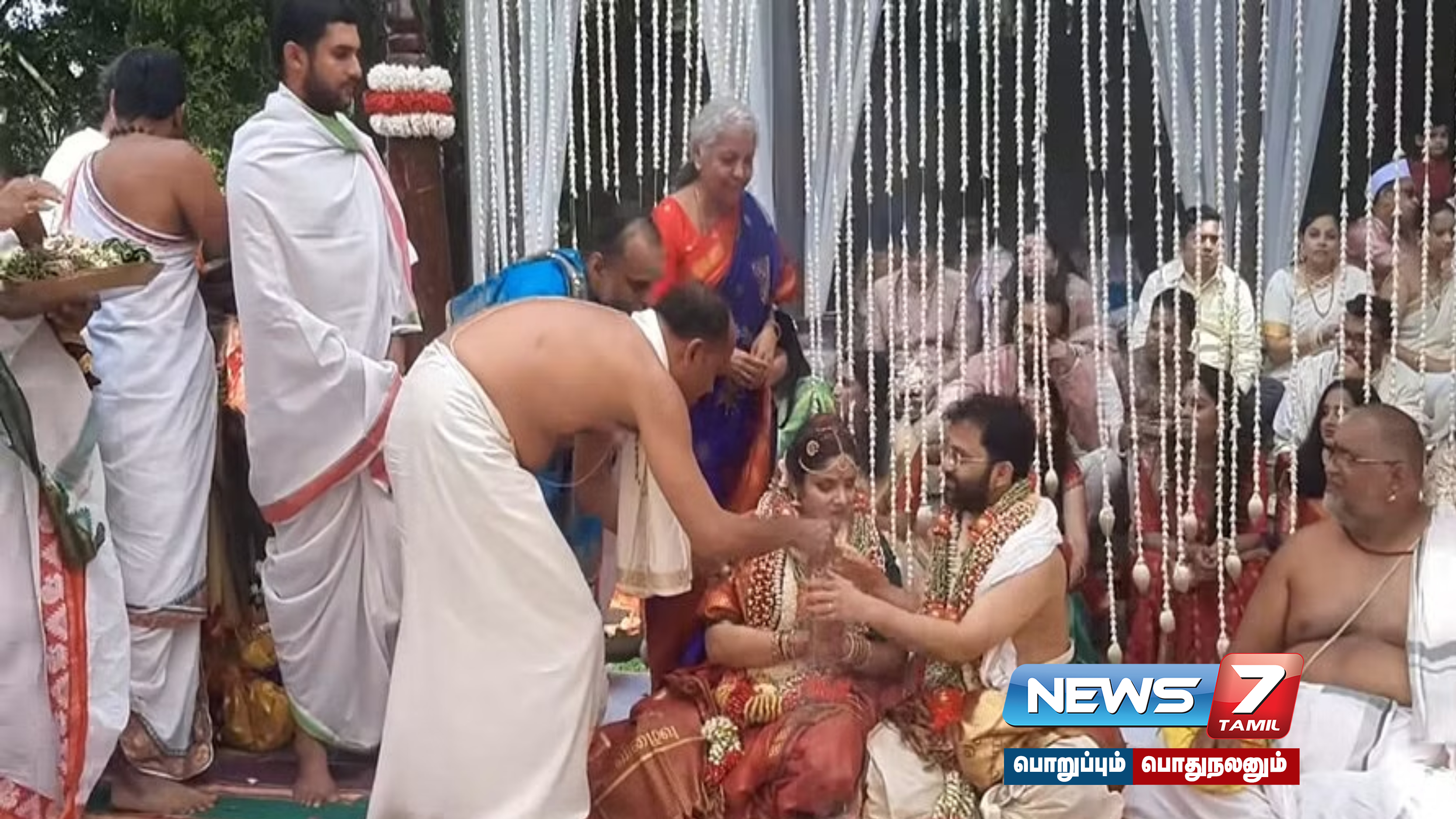 மத்திய நிதியமைச்சர் நிர்மலா சீதாராமன் மகள் திருமணம் பெங்களூரு ஜெயநகர் பகுதியில் உள்ள ஹோட்டலில் நேற்று நடைபெற்றது. இந்த திருமணம் ஆடம்பரமான ஏற்பாடுகளோ அல்லது விஐபி அழைப்பிதழ்களோ இன்றி ஆதமரு மடத்தின் வேத முறைப்படி நடைபெற்றதாக தகவல்கள் வெளியாகியுள்ளன. சீதாராமனின் மகள் பரகலா வாங்மாயி, குஜராத்தைச் சேர்ந்த, பிரதமர் நரேந்திர மோடியின் முக்கிய உதவியாளரான பிரதிக் தோஷி என்பவரை திருமணம் செய்து கொண்டார்.