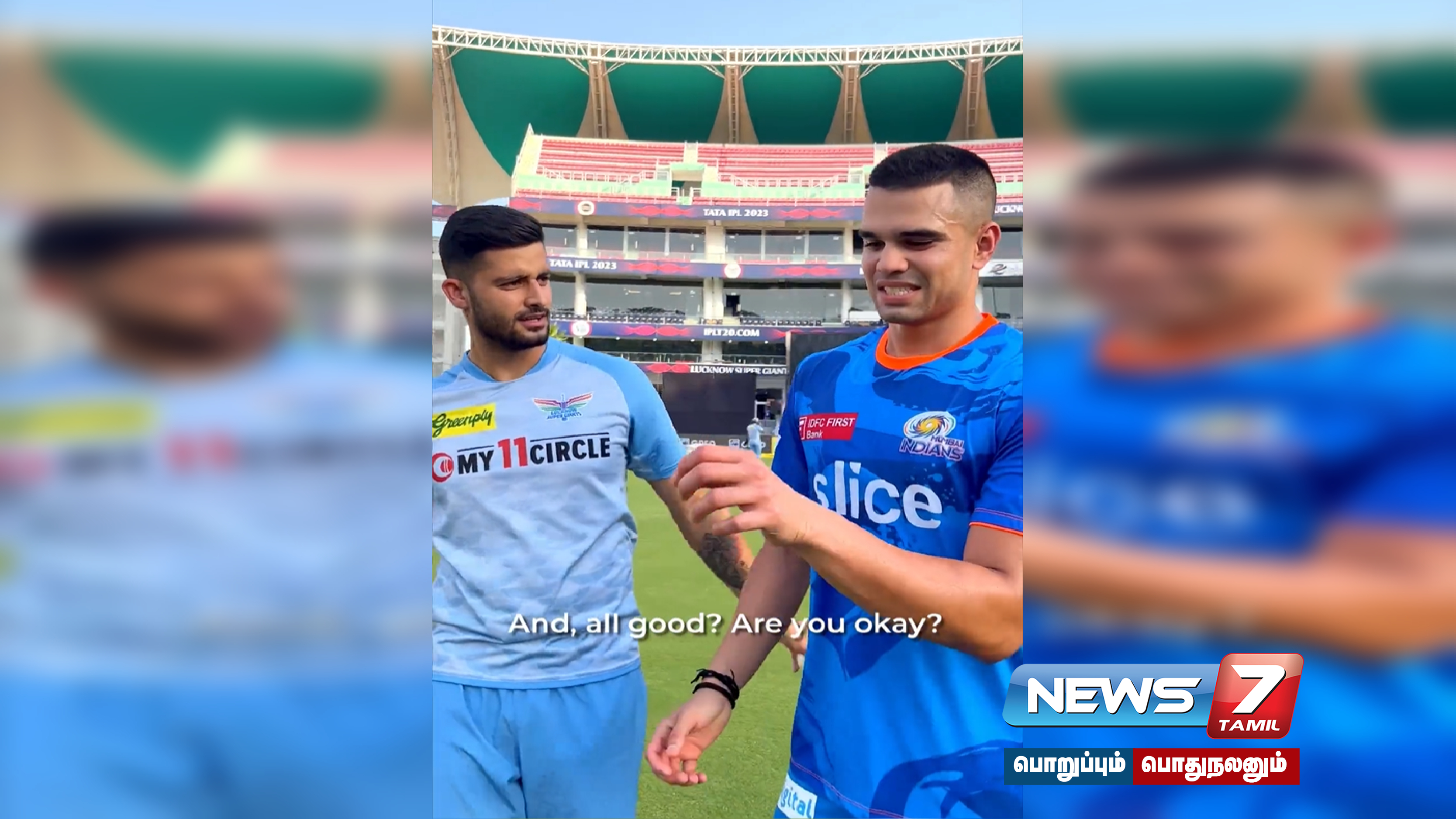 இந்நிலையில், லக்னோ சூப்பர் ஜெயண்ட்ஸ் தனது ட்விட்டர் பக்கத்தில் ஒரு வீடியோவை பகிர்ந்துள்ளது. இந்த வீடியோவில் லக்னோ அணி வீரர் யுத்விர் சிங் மற்றும் மோசின் கான் உடன் அர்ஜுன் டெண்டுல்கர் பேசுகையில் தன்னை நாய் கடித்ததாக அவர் தெரிவித்துள்ளார். மேலும் அதன் காரணமாக அவரால் பயிற்சியில் ஈடுபட முடியவில்லை எனவும் தெரிவித்துள்ளார்.