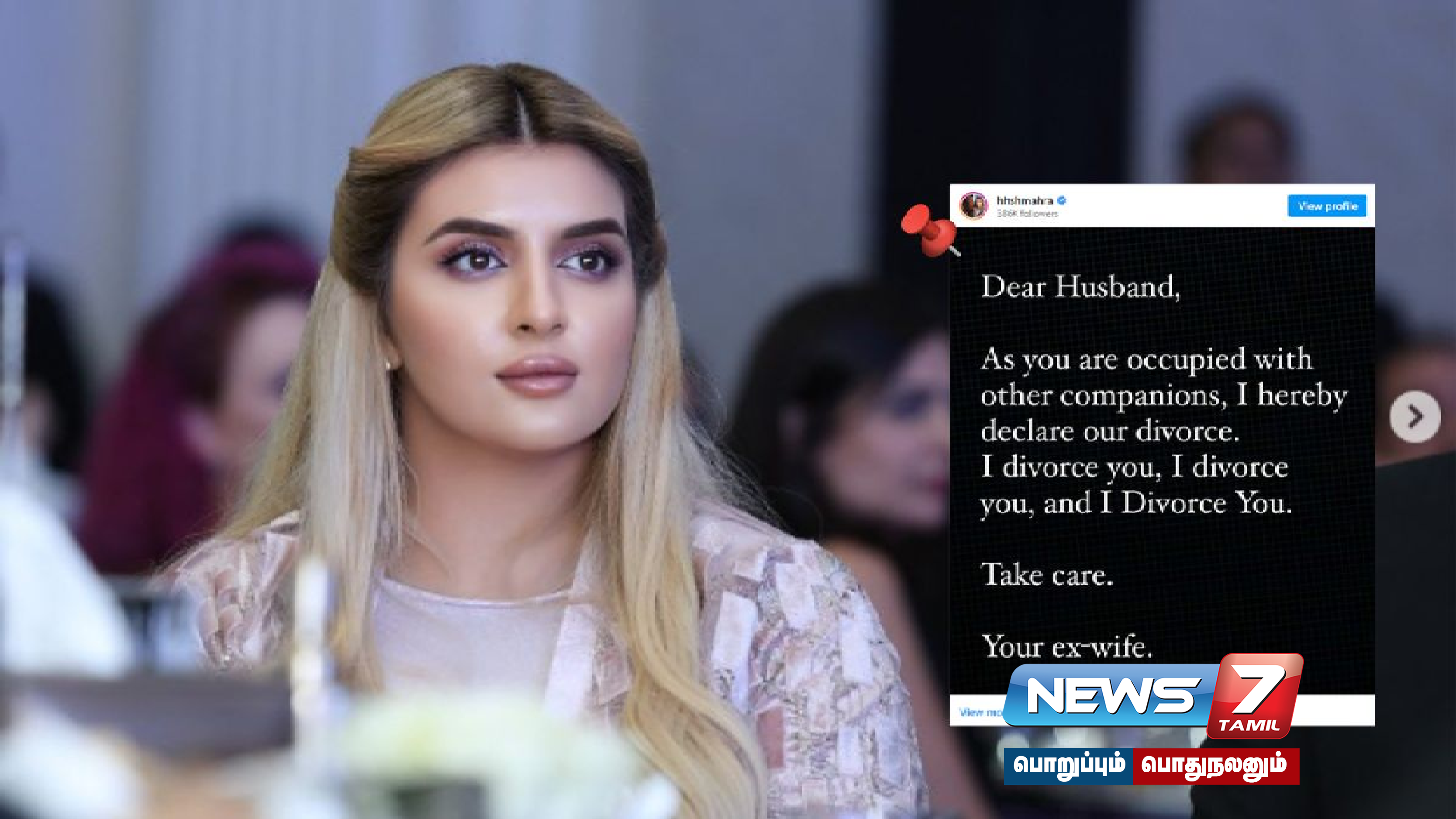 துபாய் இளவரசி ஷேக்கா மஹ்ரா, தனது இன்ஸ்டாகிராம் போஸ்ட்டில் விவாகரத்தை அறிவித்துள்ளார்.