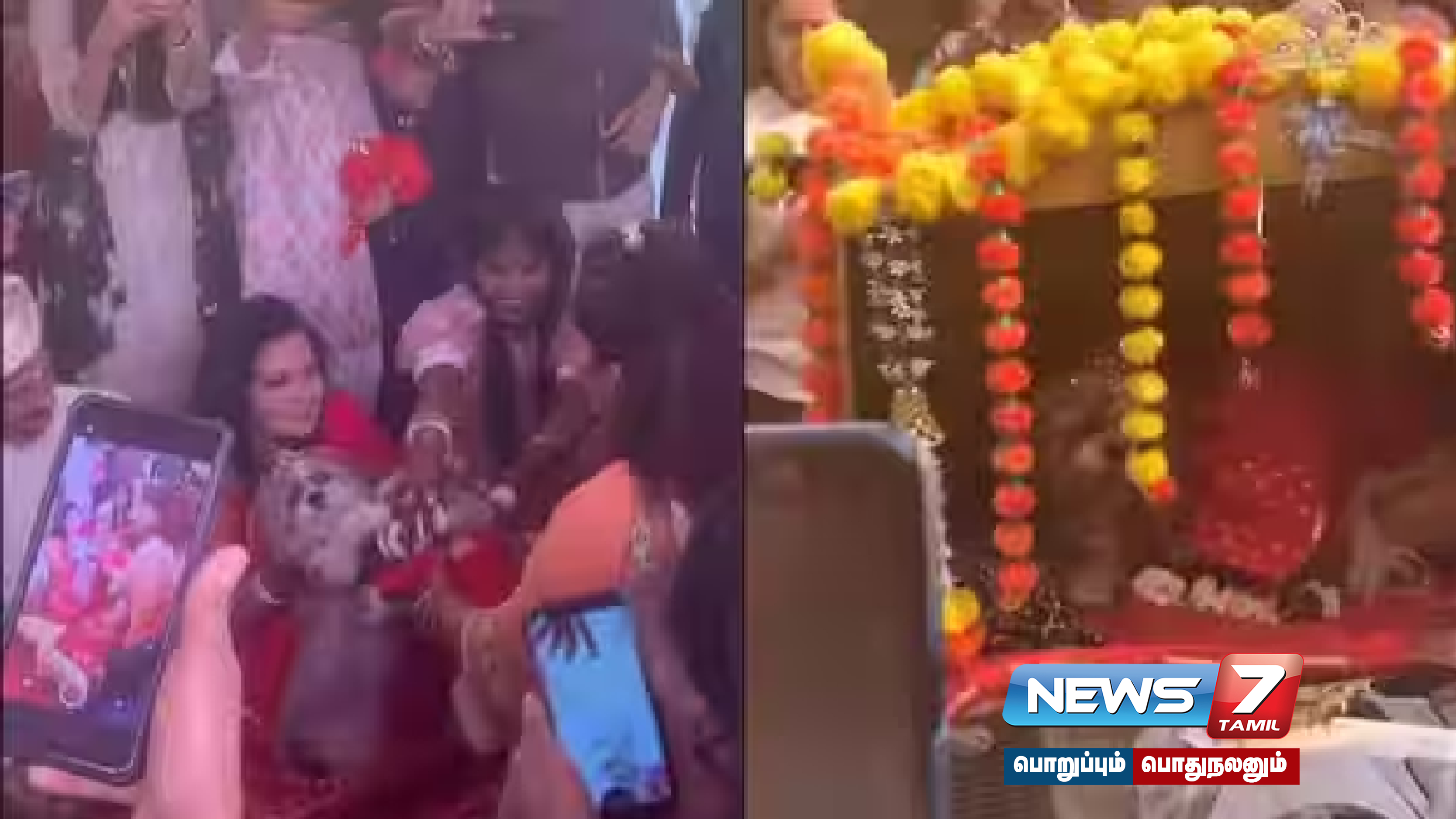கடந்த 2 நாட்களுக்கு முன்பு ஹேடிண்டர்சிங் என்பவர் தனது ட்விட்டர் பக்கத்தில் வீடியோ ஒன்றை பதிவிட்டார். அந்த வீடியோவில் அழகான இரண்டு செல்லப்பிராணிகளுக்கு திருமண வைபவம் நடக்கிறது. அதில், செல்லப்பிராணிகளுக்கு அழகான உடைகள் அணிந்து, ஆண் நாயை மேள தாளங்கள் முழங்க, பொம்மை காரில் ஊர்வலமாக அழைத்து வருகின்றனர். பெண் நாயை பல்லக்கில் தூக்கி செல்கின்றனர். மனிதர்களுக்கு நடைபெறும் திருமண ஊர்வலம் போன்று இந்த செல்லப்பிராணிகளுக்கு அவற்றின் உரிமையாளர்கள் பிரம்மாண்டமாக திருமணம் செய்து வைக்கும் வீடியோ சமூகவலைதளங்களில் வைரலாகி வருகிறது.