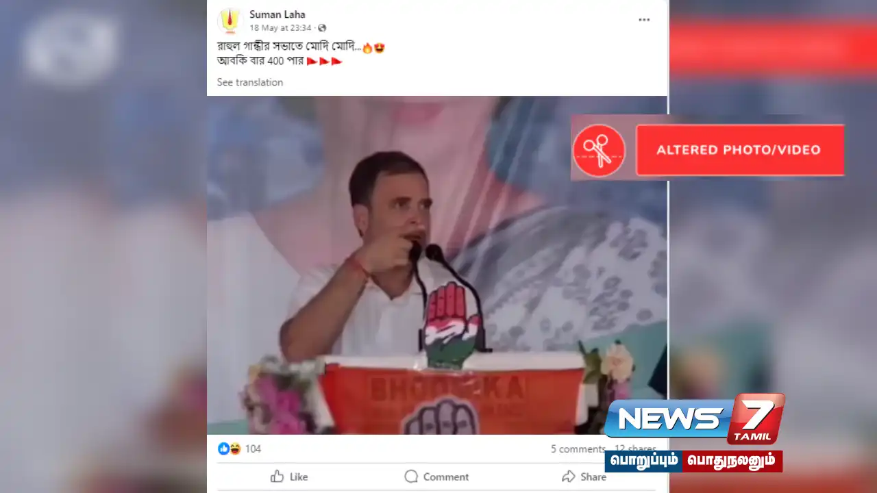 அந்த வீடியோவை ஃபேஸ்புக்கில் பதிவிட்டு பலர், “ராகுல் காந்தியின் கூட்டத்தில் மோடி மோடி… அப்கி பார் 400 பார்” என்று தலைப்பிட்டு பகிர்ந்து வருகின்றனர்.