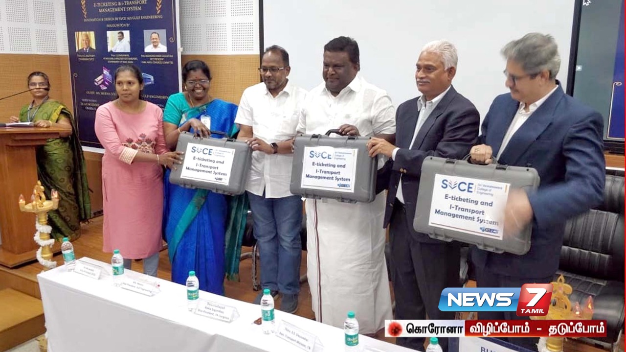 ஸ்ரீபெரும்புதூரில் உள்ள வெங்கடேஸ்வரா பொறியியல் கல்லூரியில் கல்லூரி மாணவர்கள் மற்றும் கல்ஃப் என்ஜினியரிங் அமைப்பு இணைந்து தயாரித்த இ – டிக்கெட் செயலி அறிமுக விழா நடைபெற்றது. போக்குவரத்து துறை அமைச்சர் சா.சி.சிவசங்கர் கலந்துகொண்டு செயலியை அறிமுகம் செய்தார். விழா மேடையில் பேசிய அமைச்சர் சிவசங்கர், “சட்டமன்ற மானிய கோரிக்கையின்போது போக்குவரத்து துறை சார்பாக என்னென்ன திட்டங்கள் செயல்படுத்தப்பட உள்ளன என கூறியிருந்தேன். அதில் இ-டிக்கெட் முறையும் ஒன்று. அதைத்தான் கல்லூரி மாணவர்கள் செய்து காண்பித்திருக்கிறார்கள்” என்றார்.
