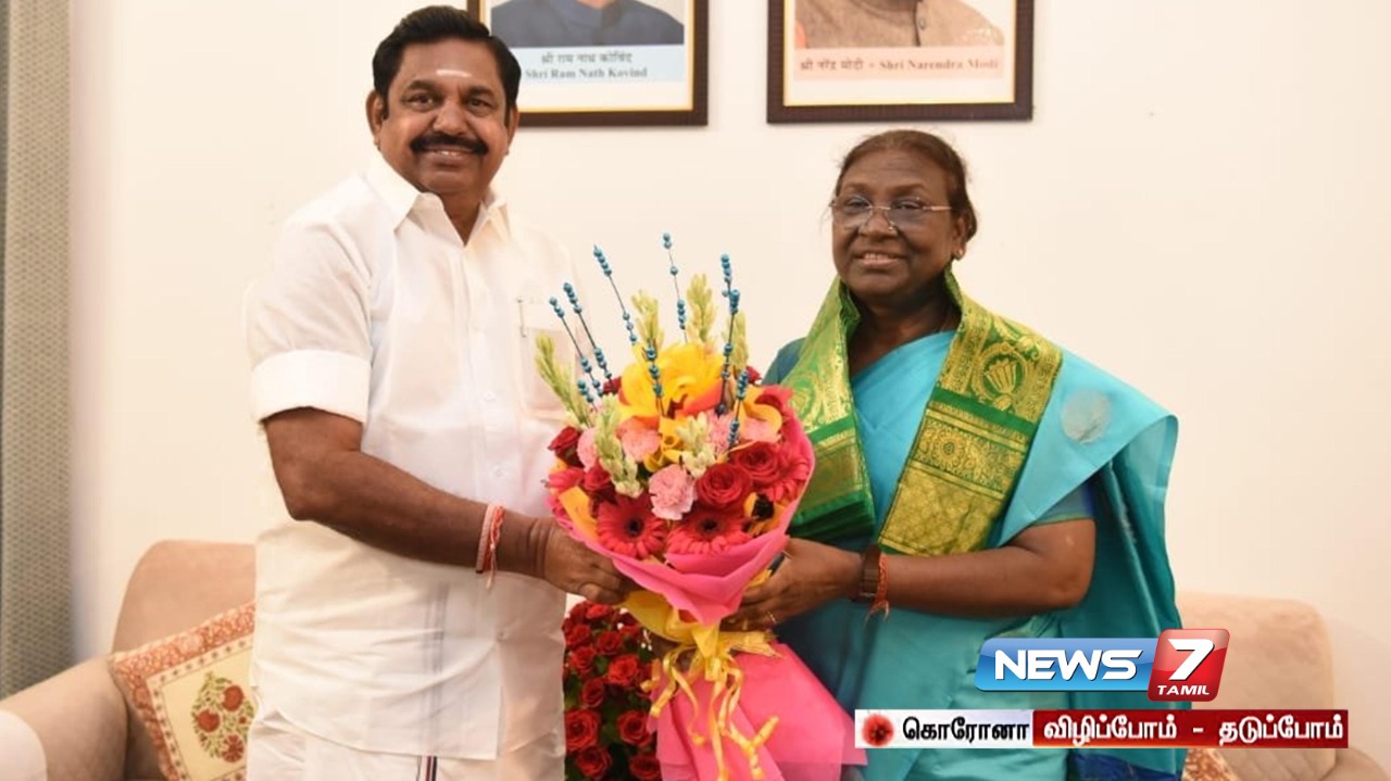 குடியரசு தலைவர் தேர்தலில் வெற்றி பெற்ற திரௌபதி முர்முவை அதிமுகவின் இடைக்கால பொதுசெயலாளர் எடப்பாடி பழனிசாமி நேரில் சந்தித்து வாழ்த்து தெரிவித்தார்.