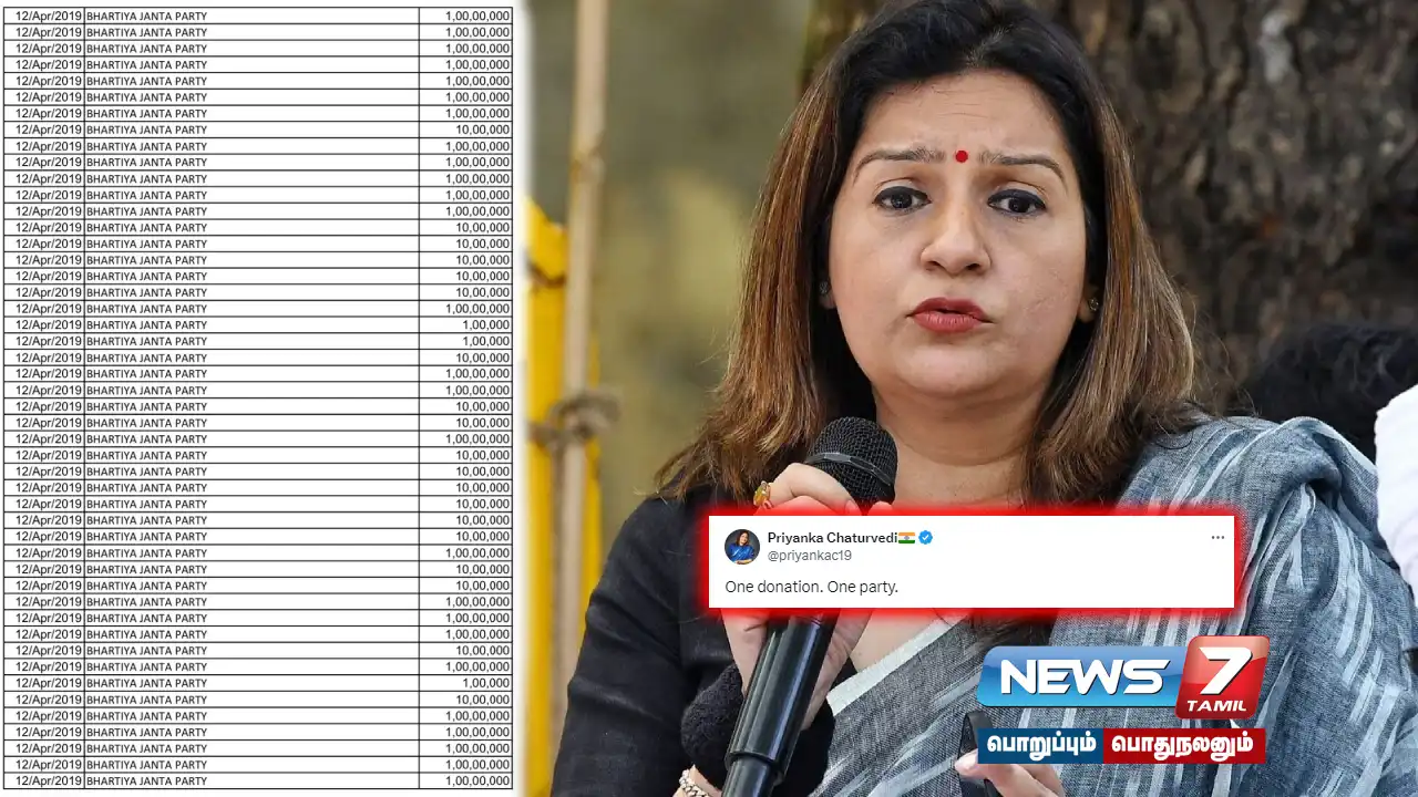 ஒரு நாளில் பாஜக பெற்ற தொகை எவ்வளவு என்பது குறித்து சிவசேனா கட்சி உத்தவ் தாக்கரே அணியின் ராஜ்ய சபா உறுப்பினரான பிரியங்கா சதுர்வேதி தனது ட்விட்டர் (எக்ஸ்) தளத்தில் தகவலை வெளியிட்டு விமர்சித்துள்ளார்.