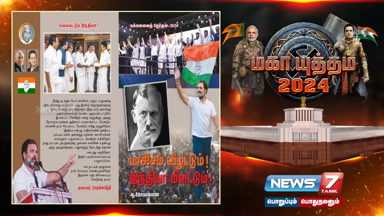 “பாசிசம் வீழட்டும்! இந்தியா வெல்லட்டும்!” என்ற தலைப்பில் தமிழ்நாடு காங்கிரஸ் கமிட்டி துணைத்தலைவர் ஆ.கோபண்ணா எழுதிய தேர்தல் பிரச்சார கையேடு இன்று வெளியிடப்பட்டது.