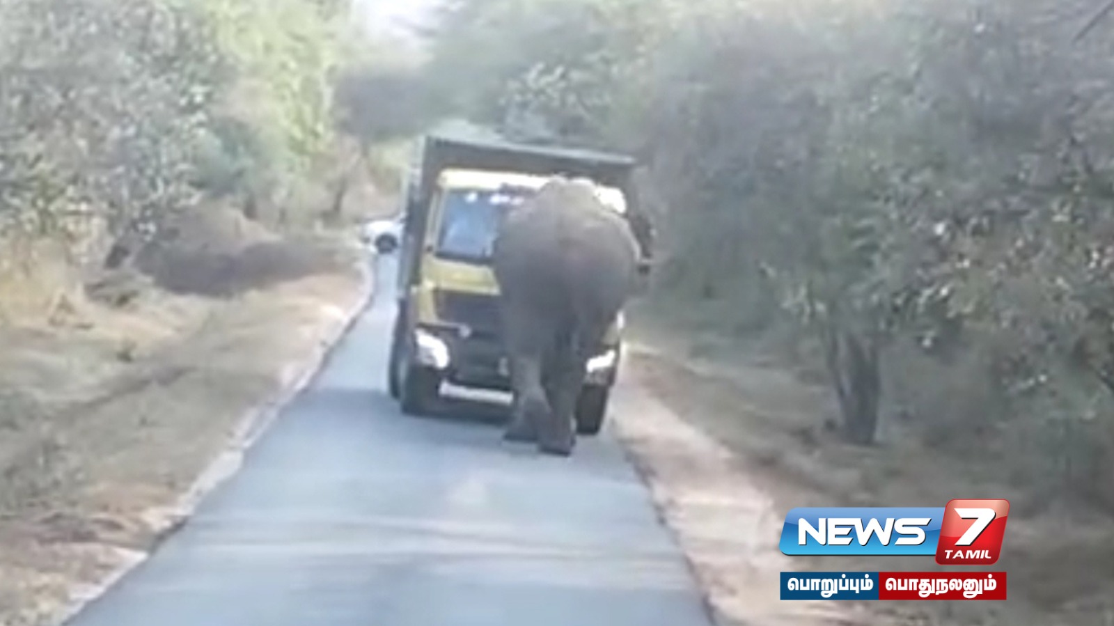 இந்நிலையில் லாரியைகளை வழிமறித்த காட்டு யானை, லாரியில் உணவு பொருட்கள் ஏதாவது உள்ளதா என லாரியை நோட்டமிட்டு நீண்ட நேரமாக வழிமறித்து நின்றும் லாரியை சுற்றி சுற்றியும் வந்தது, அப்போது காட்டு யானையிடமிருந்து தப்பிக்க லாரியிலிருந்து இறங்கிய ஓட்டுநரை கண்ட காட்டு யானை, லாரி ஓட்டுனரை துரத்தியது. இதை அறிந்து கொண்ட லாரி ஓட்டுநர் வேகமாக ஓடி நொடி பொழுதில் உயிர் தப்பினார்.