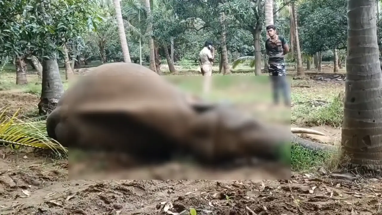 மதிக்கத்தக்க ஆண் யானை தோப்புக்குள் சென்று அங்கிருந்த தென்னங்கன்றை தின்றது. அப்போது எதிர்பாராத விதமாக சட்ட விரோதமாக அமைக்கப்பட்ட மின் வேலியில் சிக்கியதில் மின்சாரம் தாக்கி யானை உயிரிழந்தது.