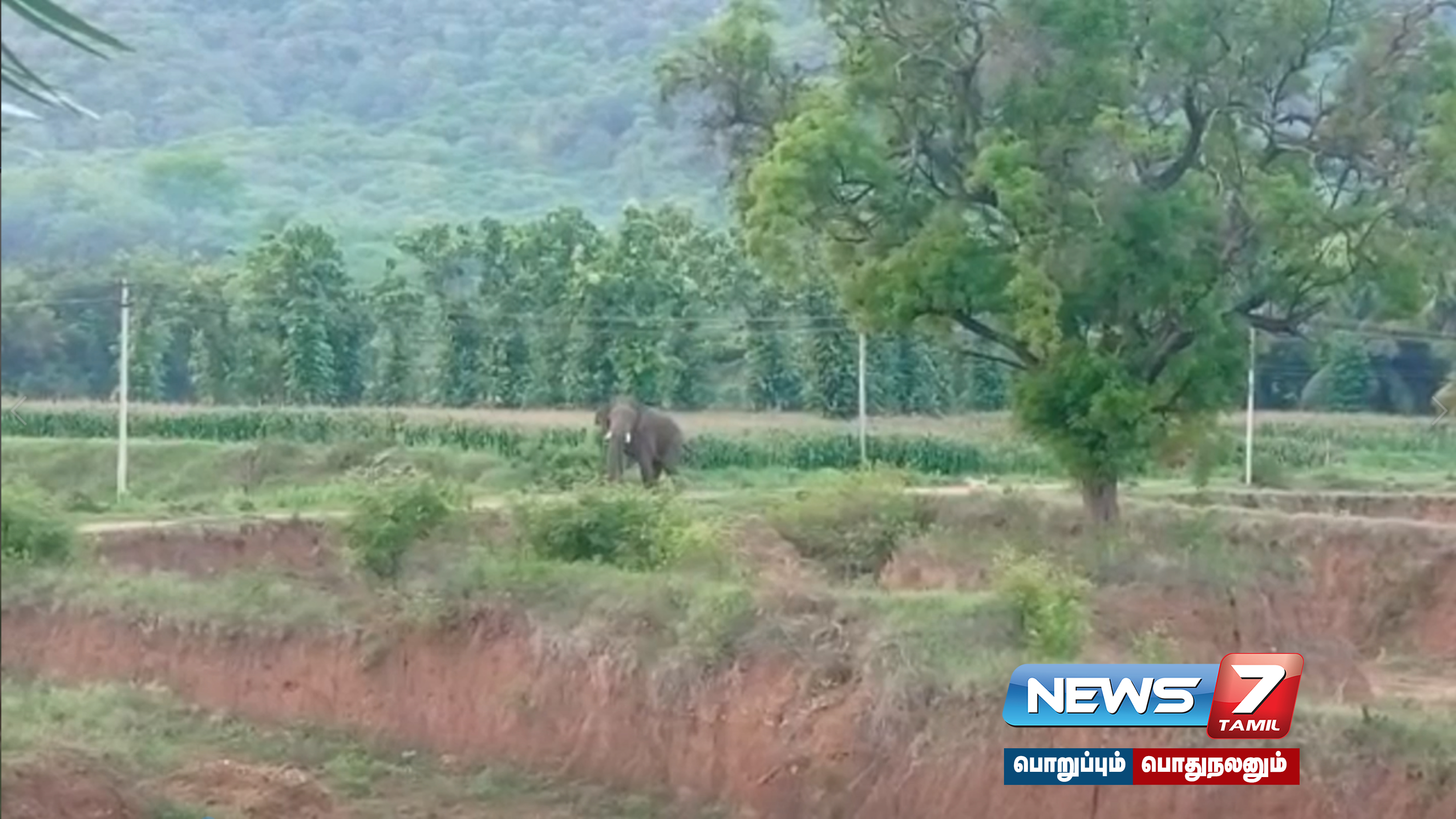 பழனி அருகே விவசாய நிலங்களுக்குள் புகுந்த காட்டு யானைகளால் விவசாயிகள் மற்றும் பொதுமக்கள் அச்சமடைந்துள்ளனர்.