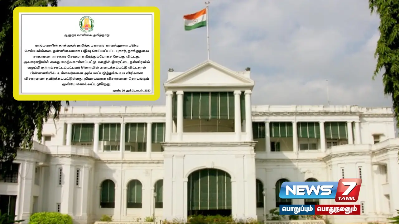 இந்த நிலையில் இது தொடர்பாக ஆளுநர் மாளிகை தரப்பில் வெளியிடப்பட்டுள்ள செய்திக் குறிப்பில் தெரிவித்துள்ளதாவது.,..