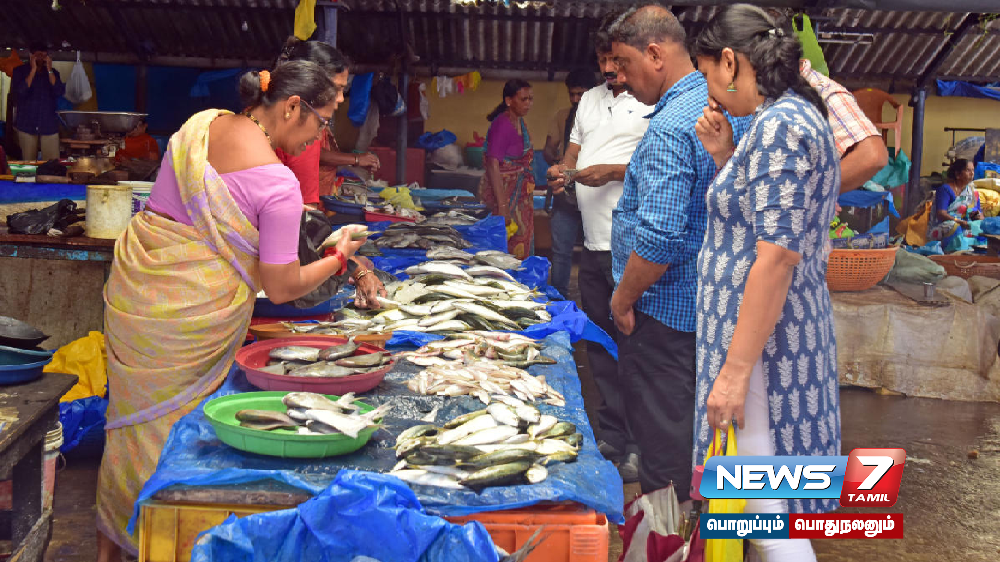 மீன்பிடி தடை காலம் முடிந்துள்ள நிலையில், கொட்டும் மழையிலும் மீன்பிரியர்கள் அதிகாலையில் துறைமுகத்தில் திரண்டனர்.